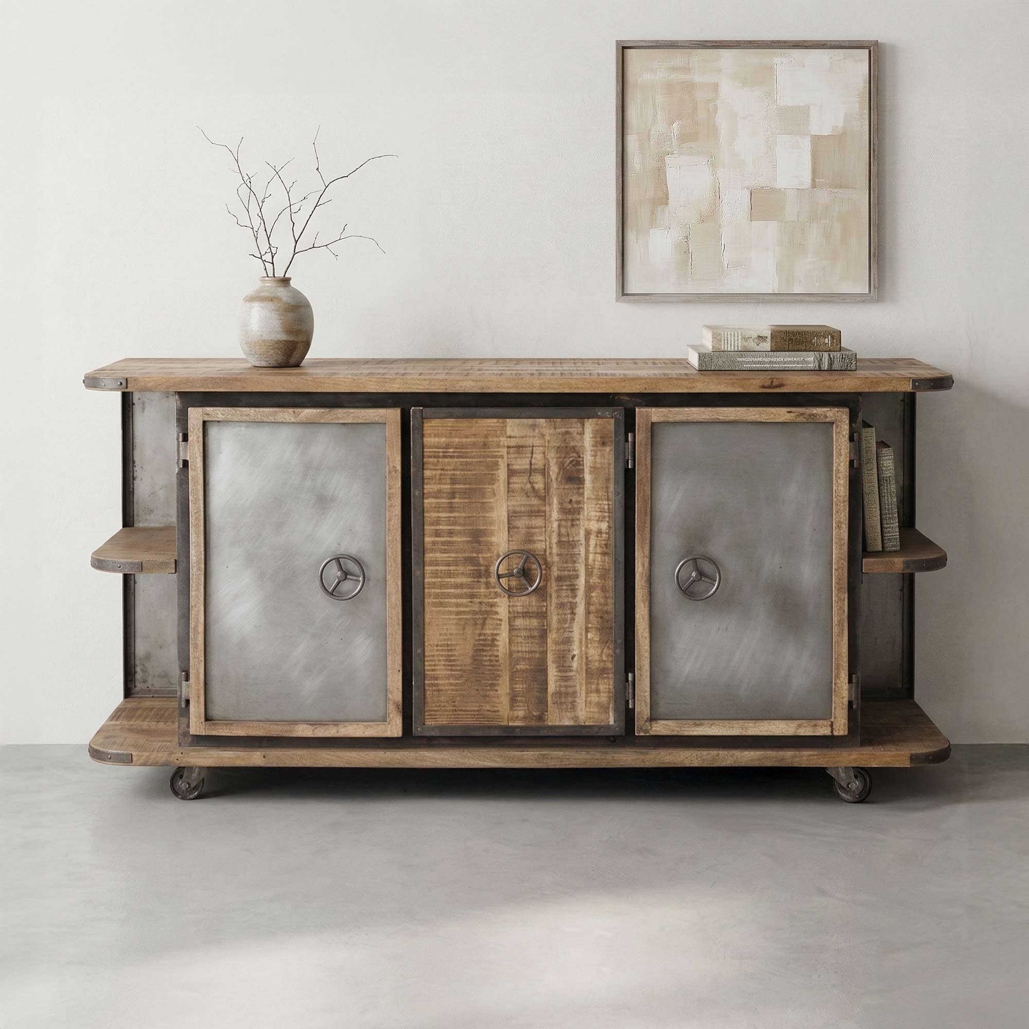 Composé de bois de manguier et de métal en finition naturelle, ce buffet-bar trouvera une place de choix chez vous!