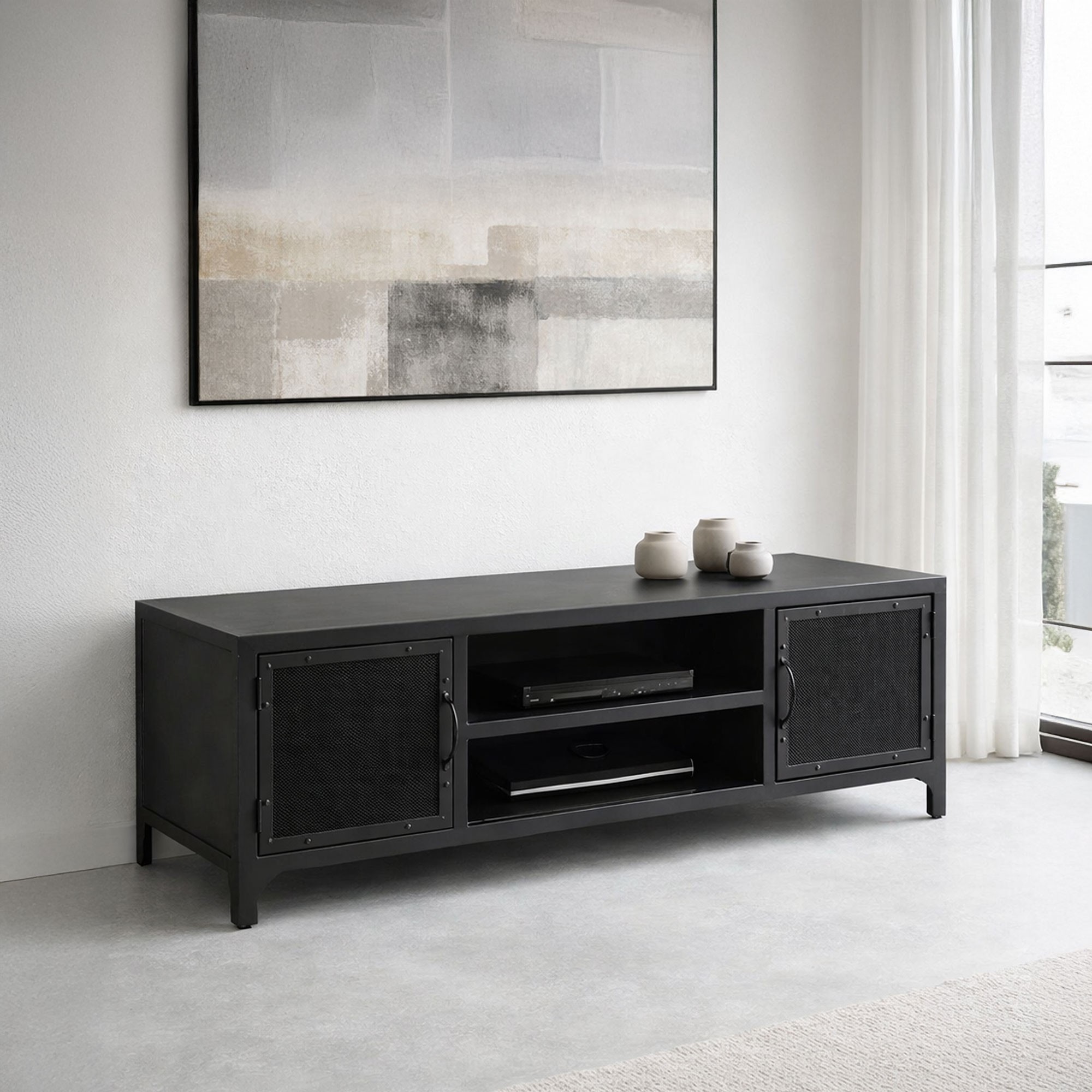 Design chic, mais surtout tendance ! Le look moderne de ce meuble tv en métal noir s'intègrera parfaitement à toutes les styles de déco.