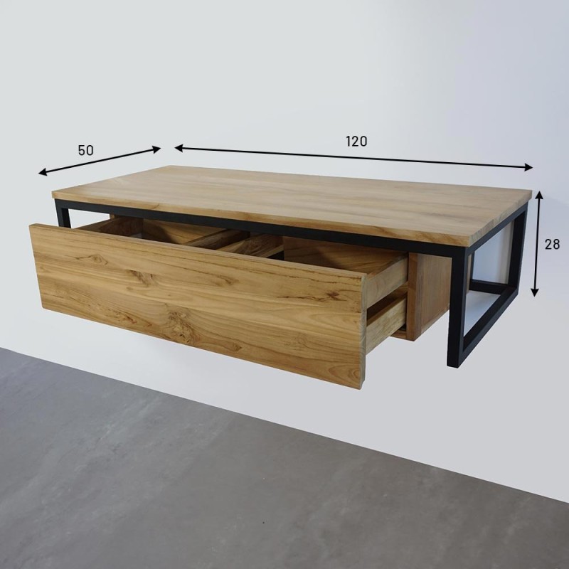 Ce meuble de salle de bain de 120 cm de long fait partie de la collection Loft. Avec son look industriel tendance et la finesse de sa finition en teck, il trouvera sa place dans un intérieur contemporain et minimaliste.