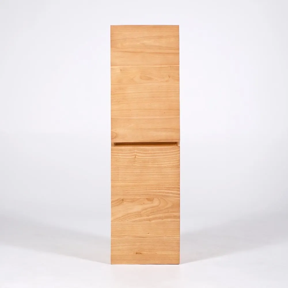 Découvrez la colonne de salle de bain de la collection Trinity, un modèle conçu en bois massif de mindi qui allie avec élégance fonctionnalité et design scandinave. Ce meuble suspendu offre une silhouette épurée et intemporelle, parfaite pour rehausser l'ambiance de votre salle de bain.