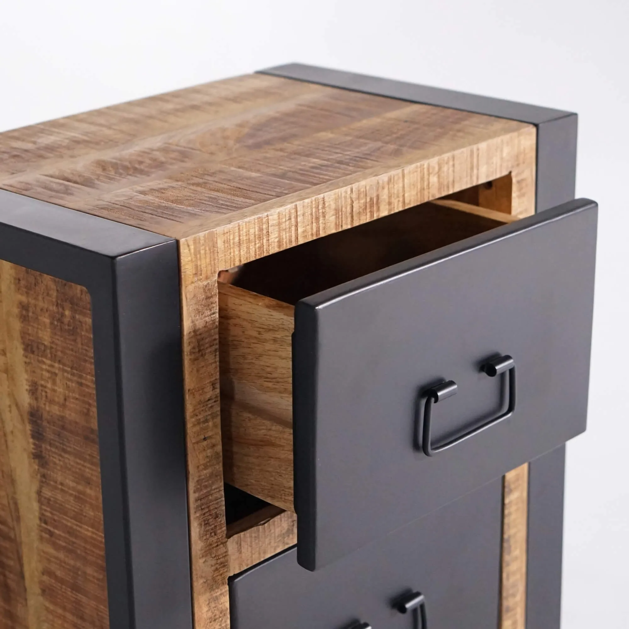 Cette commode industrielle fait partie de la collection Kansas. Vous pourrez le combiner avec le meuble TV ou la bibliothèque pour créer une ambiance harmonieuse et affirmée.