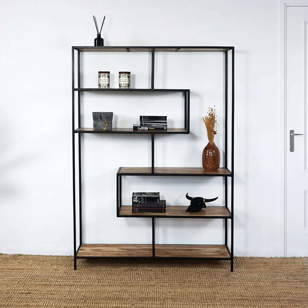 Avec ses lignes asymétriques, cette étagère est à la fois fonctionnelle et esthétique. Elle ajoute une touche de modernité à n'importe quelle pièce tout en offrant un style rustique et brut. Avec une hauteur de 165 cm, une largeur de 110 cm et une profondeur de 35 cm, elle est parfaitement dimensionnée pour s'adapter à n'importe quel espace.
