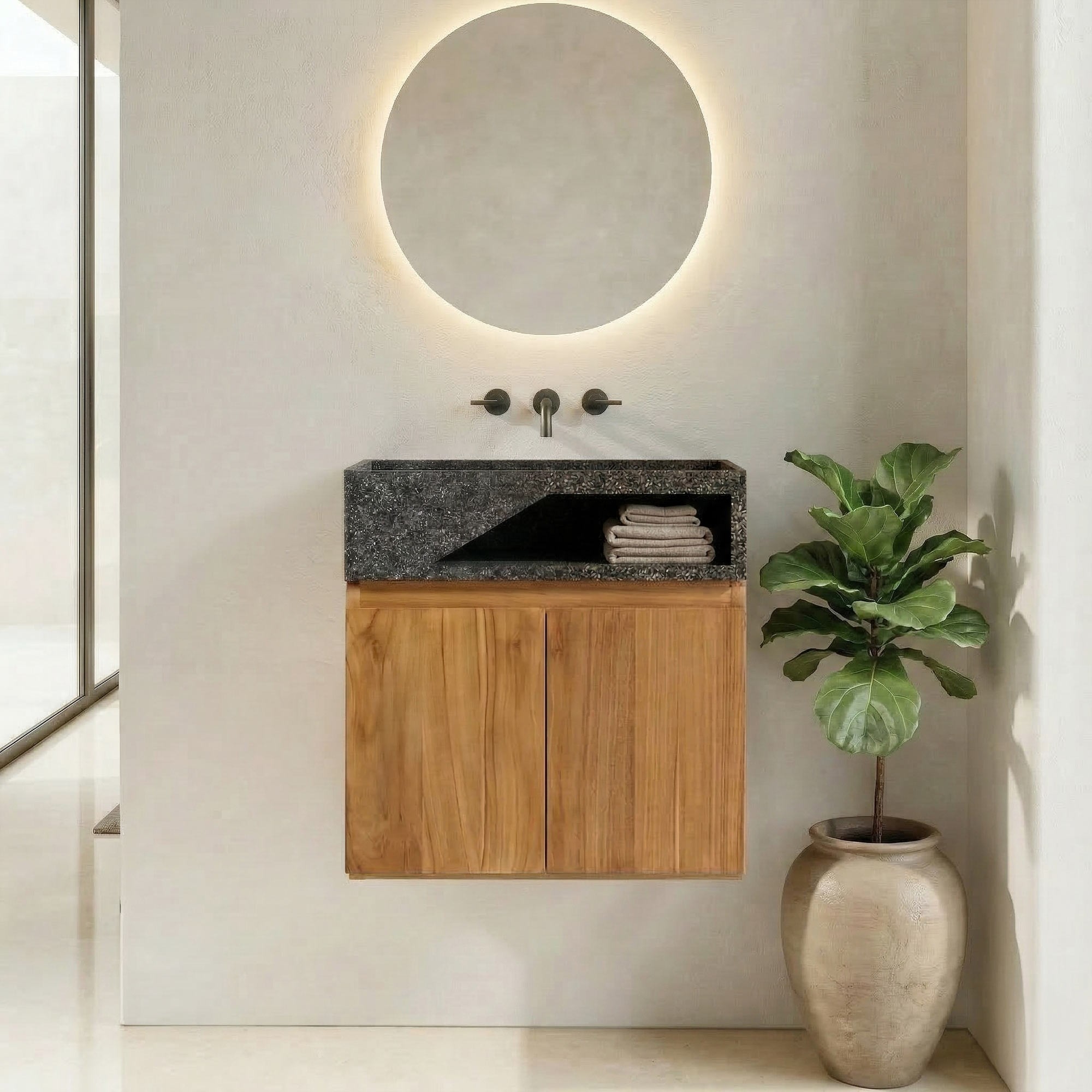 Meuble lave-mains suspendu en bois de teck massif - Padang
