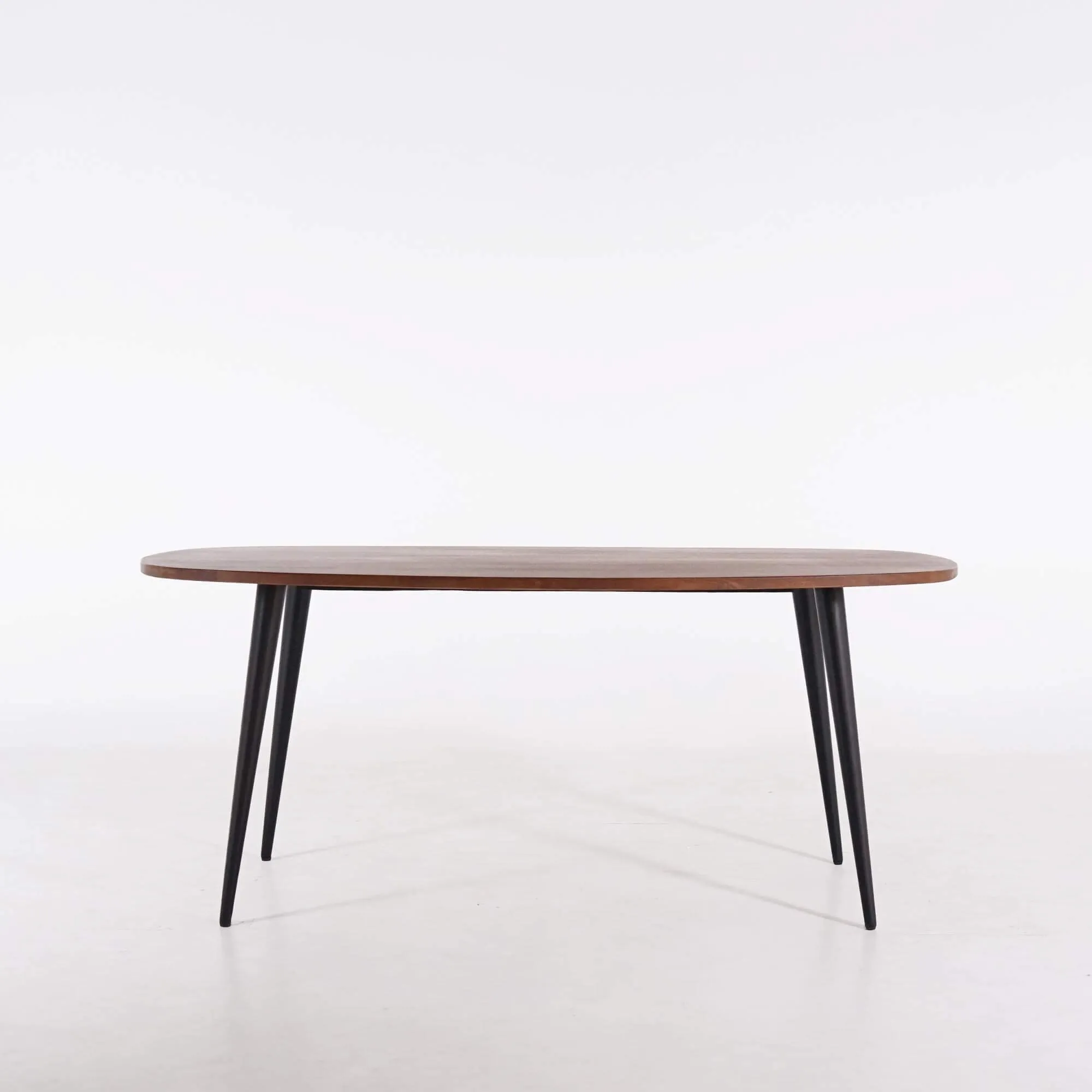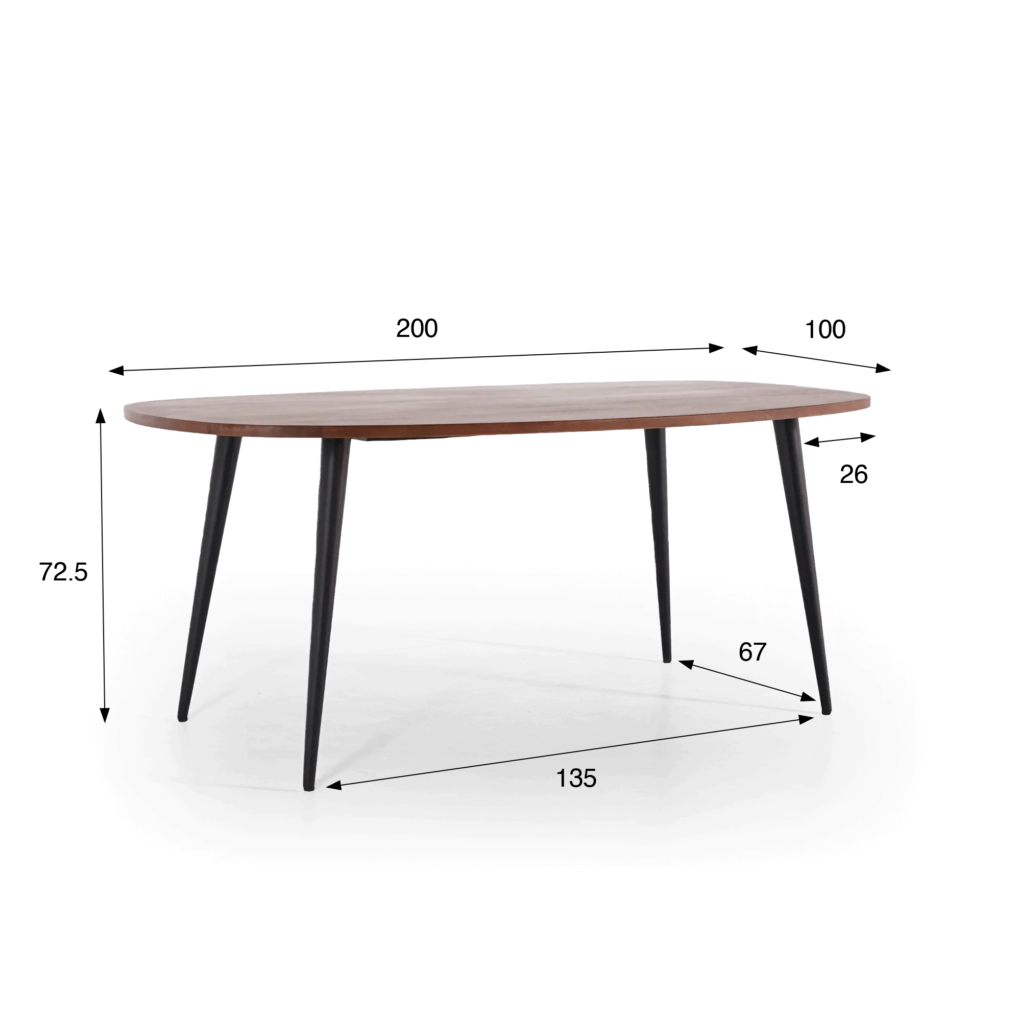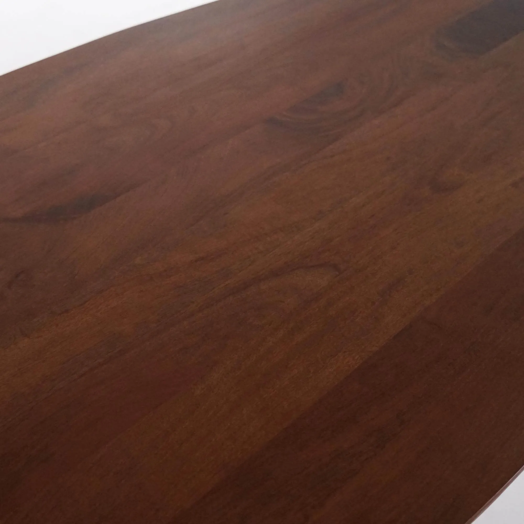 Entièrement façonnée à la main dans notre atelier, la table à manger en bois massif de manguier Suna se distingue par son plateau ovale de 200 cm de long et 100 cm de large, offrant un espace généreux pour six à huit convives. Le veinage du manguier massif, travaillé dans une teinte brune profonde, révèle toute la richesse de son grain et confère à chaque exemplaire une singularité propre. Son toucher lisse et ses bords délicatement adoucis reflètent notre exigence de finition et le soin porté à chaque détail.