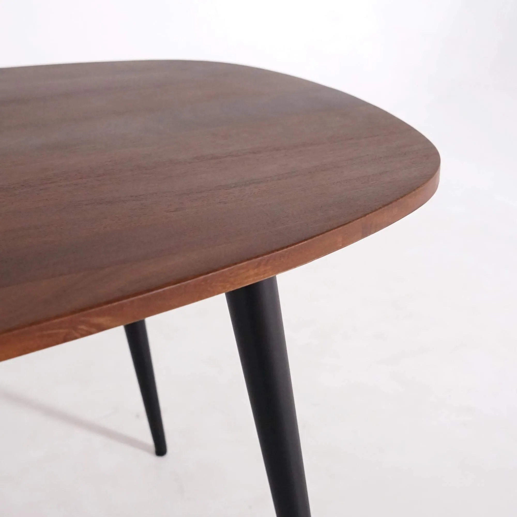 Les quatre pieds fuselés en bois teinté noir apportent à la table à manger en bois massif de manguier Suna une légèreté visuelle et un équilibre parfait à la structure. Leur silhouette fine, inspirée des créations scandinaves des années 30, confère à l’ensemble un caractère intemporel, facile à intégrer aussi bien dans un intérieur moderne que dans un espace plus vintage ou bohème.