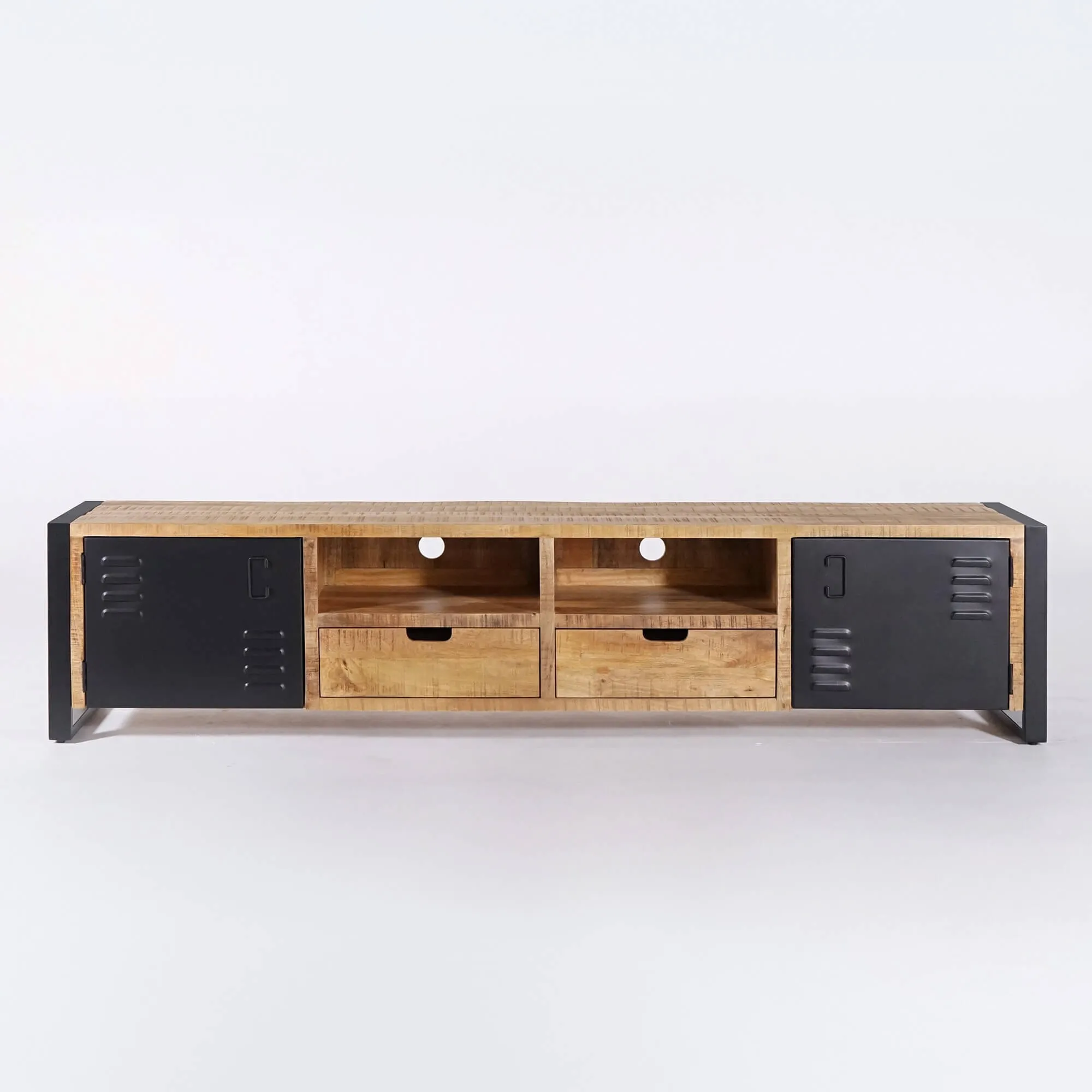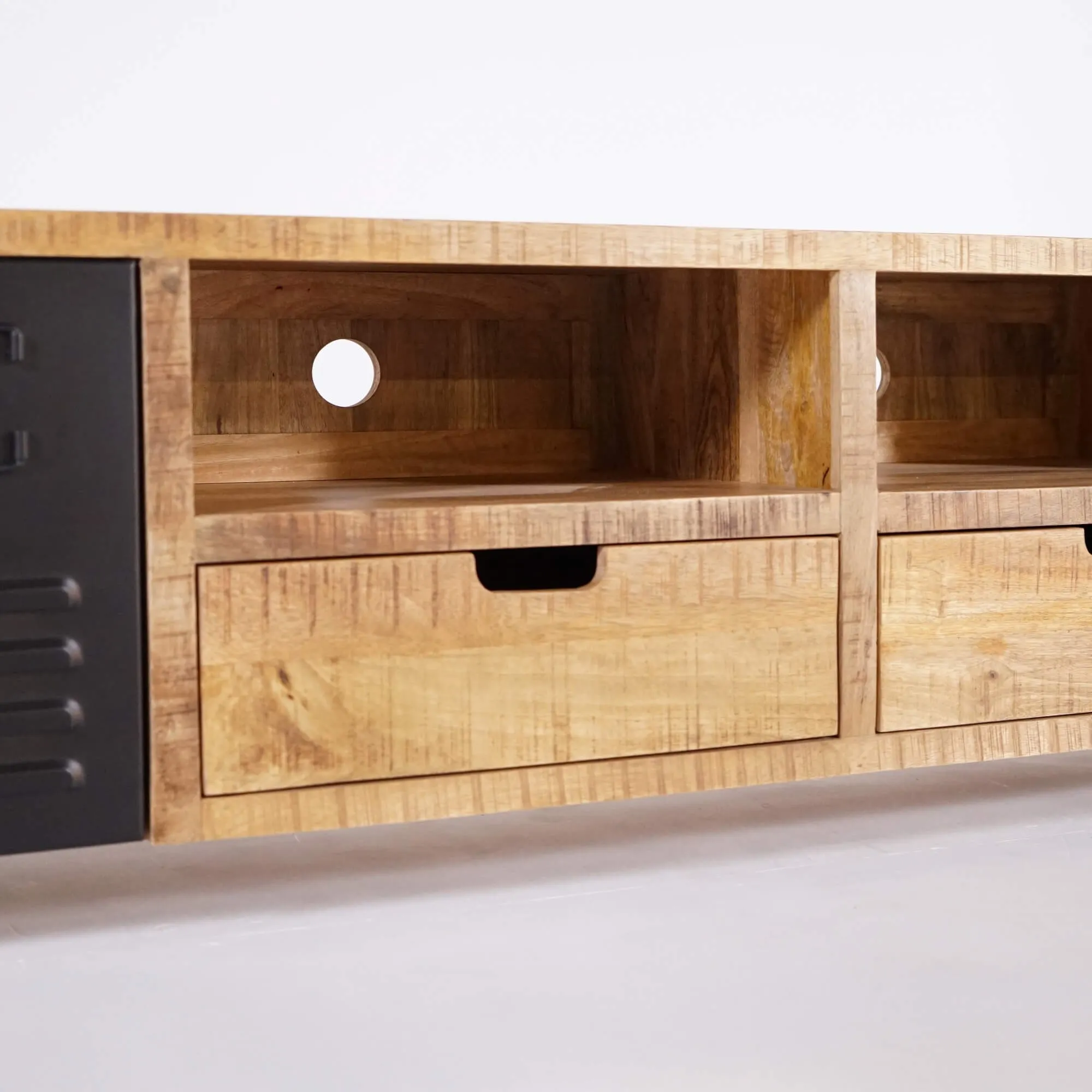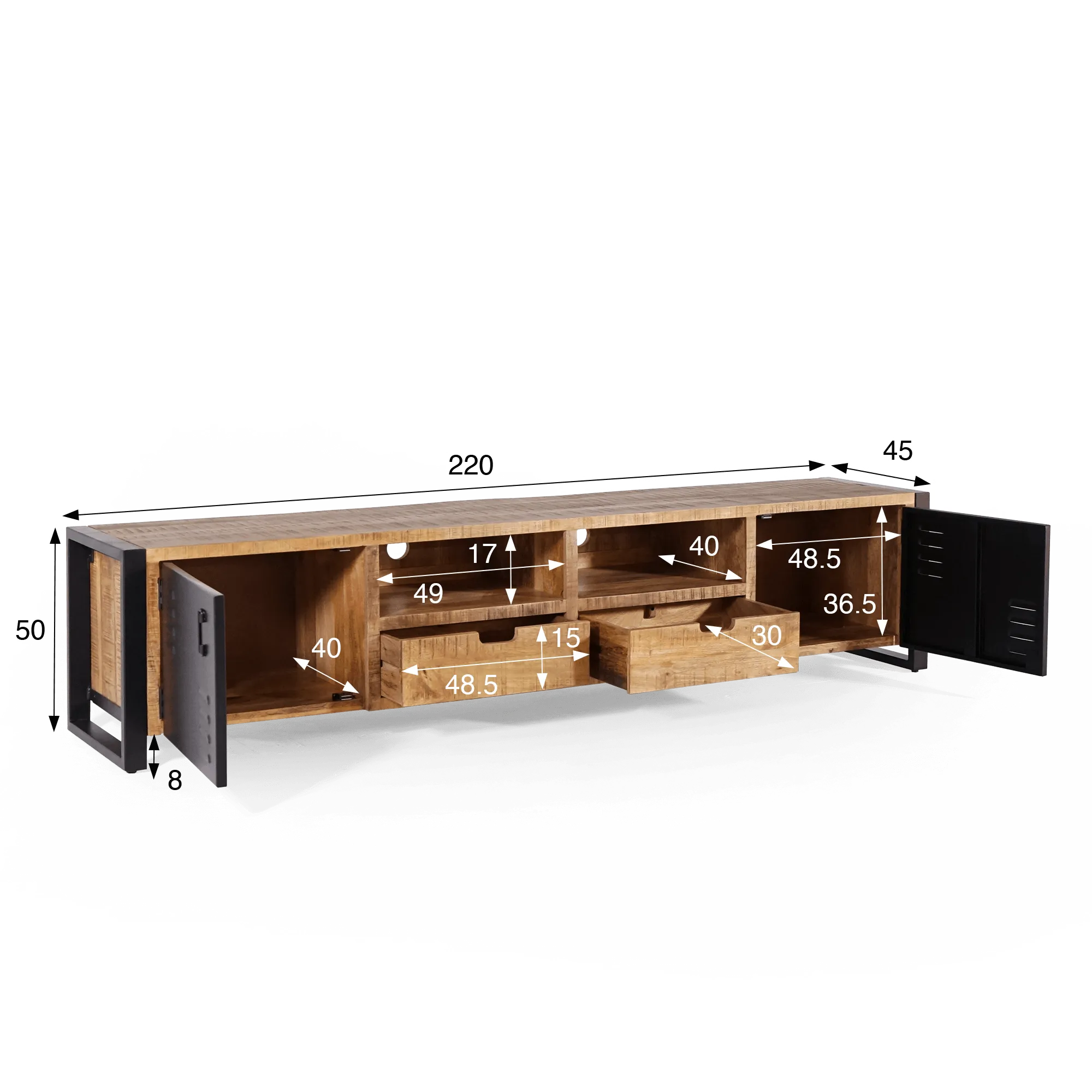 Kansas Meuble TV en bois massif manguier et porte en métal 220 cm - Kansas