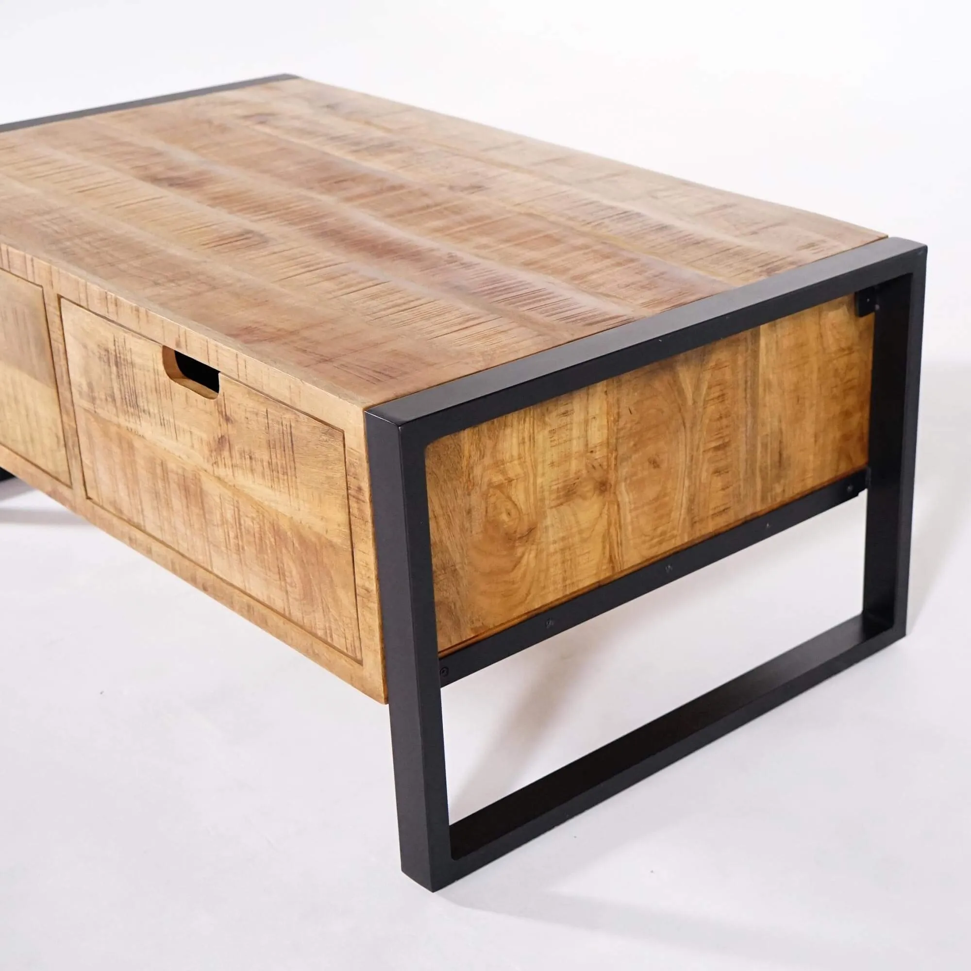 Nous avons imaginé cette table de salon en bois massif de manguier Kansas comme un compagnon du quotidien, pensé pour apporter à la fois une présence chaleureuse et une vraie praticité dans le salon. En travaillant le bois massif de manguier, nos designers ont souhaité préserver toute la richesse de ses nuances : un veinage vivant, une texture authentique, des variations naturelles qui captent la lumière et réchauffent immédiatement l’espace. Le cadre en métal noir, robuste et épuré, vient souligner le bois sans le dominer, créant ce contraste qui fait l’âme de notre collection inspirée du passé industriel du Kansas.