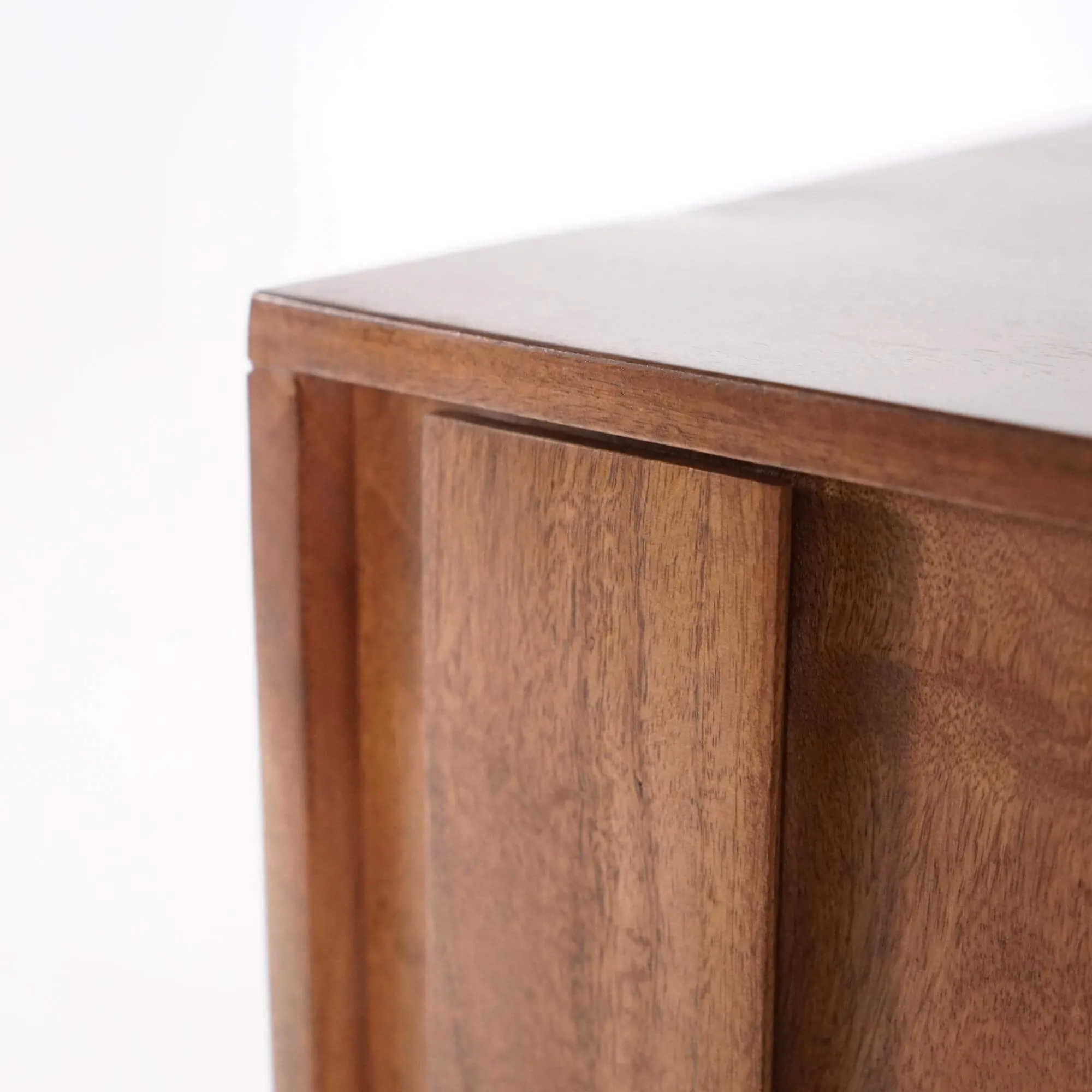 Nos designers ont imaginé le meuble bar en bois massif Flow comme une pièce sculpturale, pensée pour allier fonctionnalité et esthétique. Son design unique, marqué par des reliefs géométriques taillés directement dans le bois, évoque une œuvre artisanale à la croisée du design moderne et de l’inspiration ethnique.