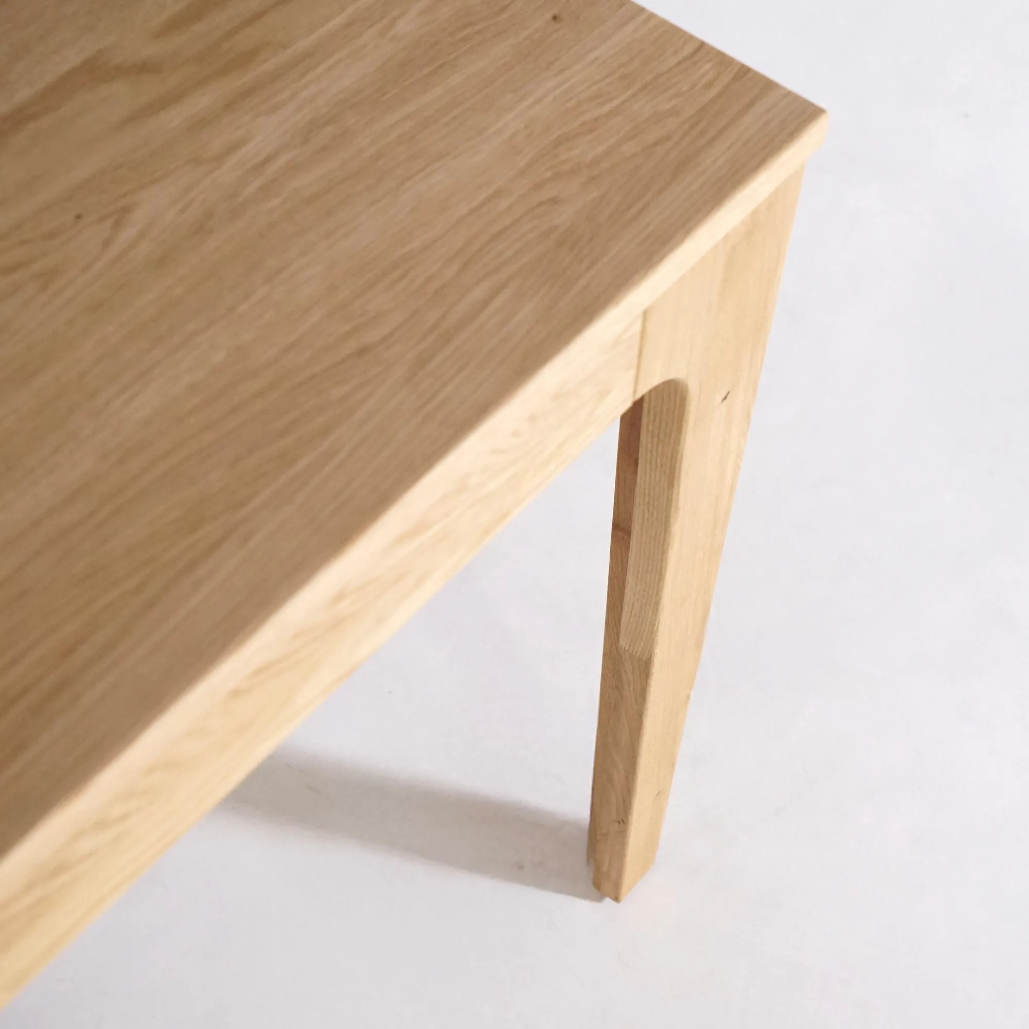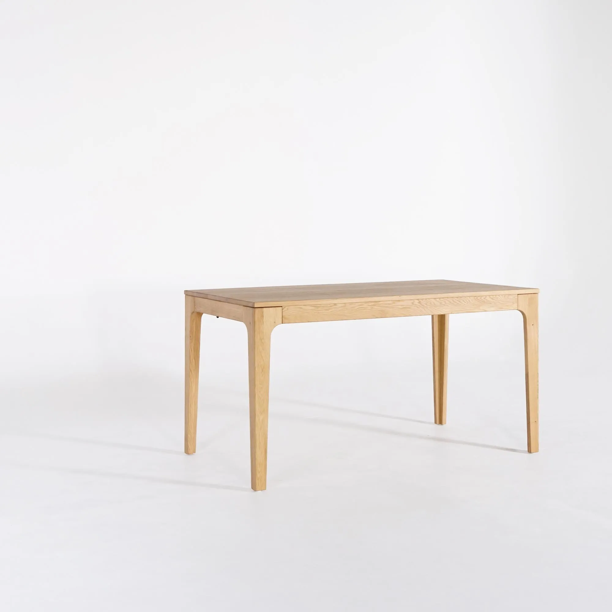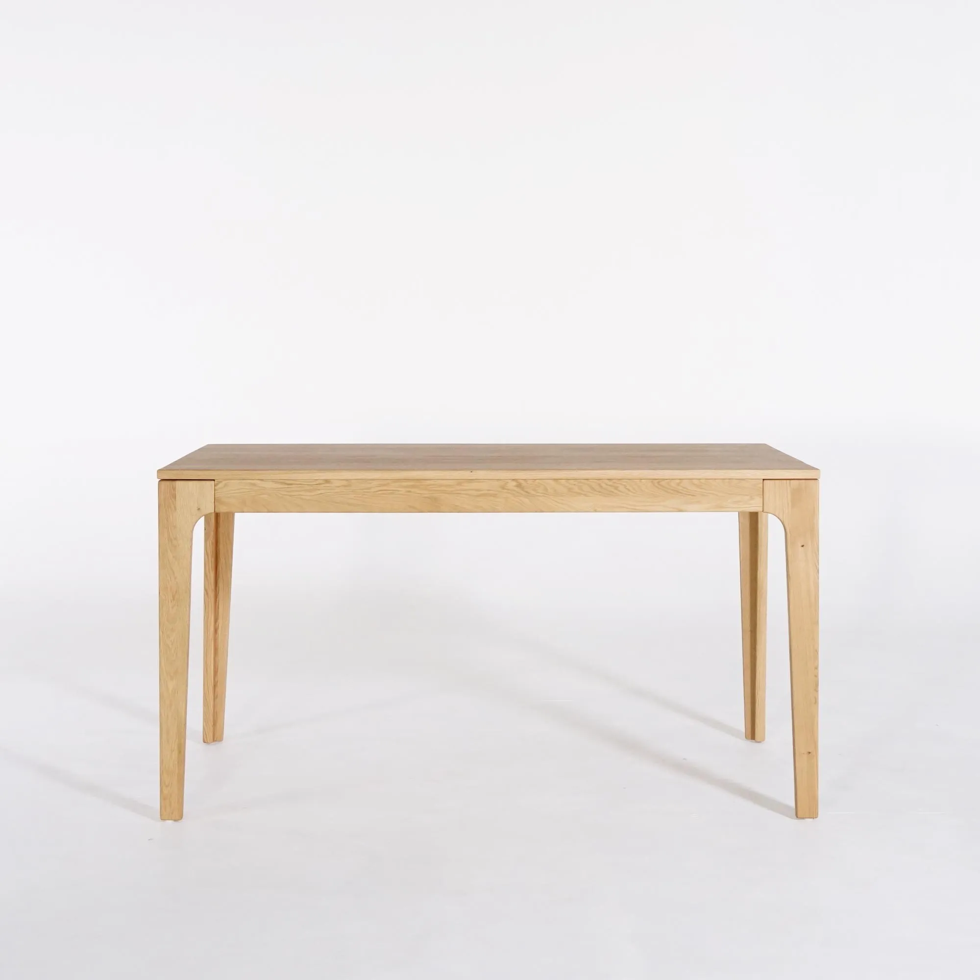 Nous avons accordé une attention particulière aux proportions de cette table à manger rectangulaire en bois de chêne 140 x 80 cm avec allonge 50 cm et aux détails de piétement. Les pieds en chêne massif, légèrement affinés et subtilement galbés, dégagent l’espace sous la table et assurent un confort optimal, avec une hauteur sous plateau d’environ 67 cm. Cette conception favorise une circulation naturelle autour de la table et une assise agréable, que ce soit pour un dîner prolongé ou un moment de travail ponctuel.