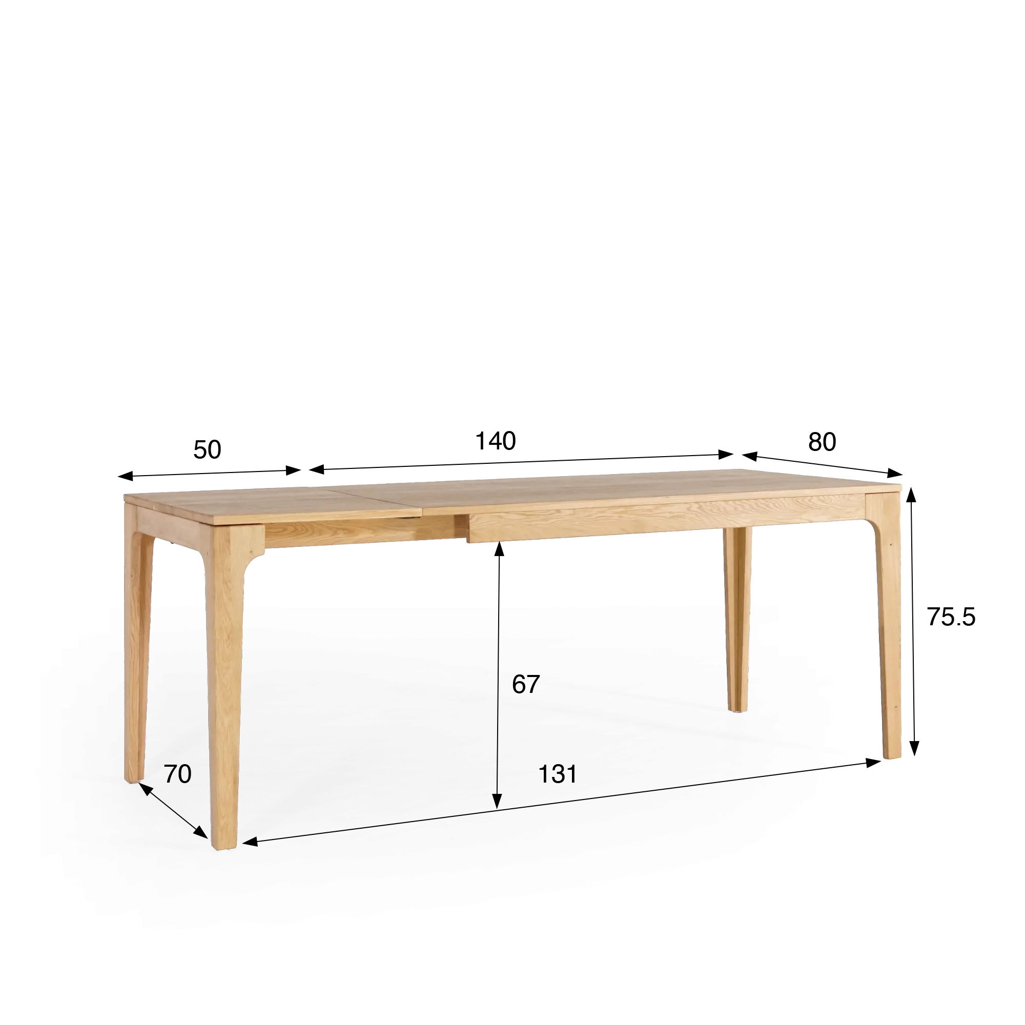 Table à manger rectangulaire en bois de chêne 140 x 80 cm avec allonge 50 cm