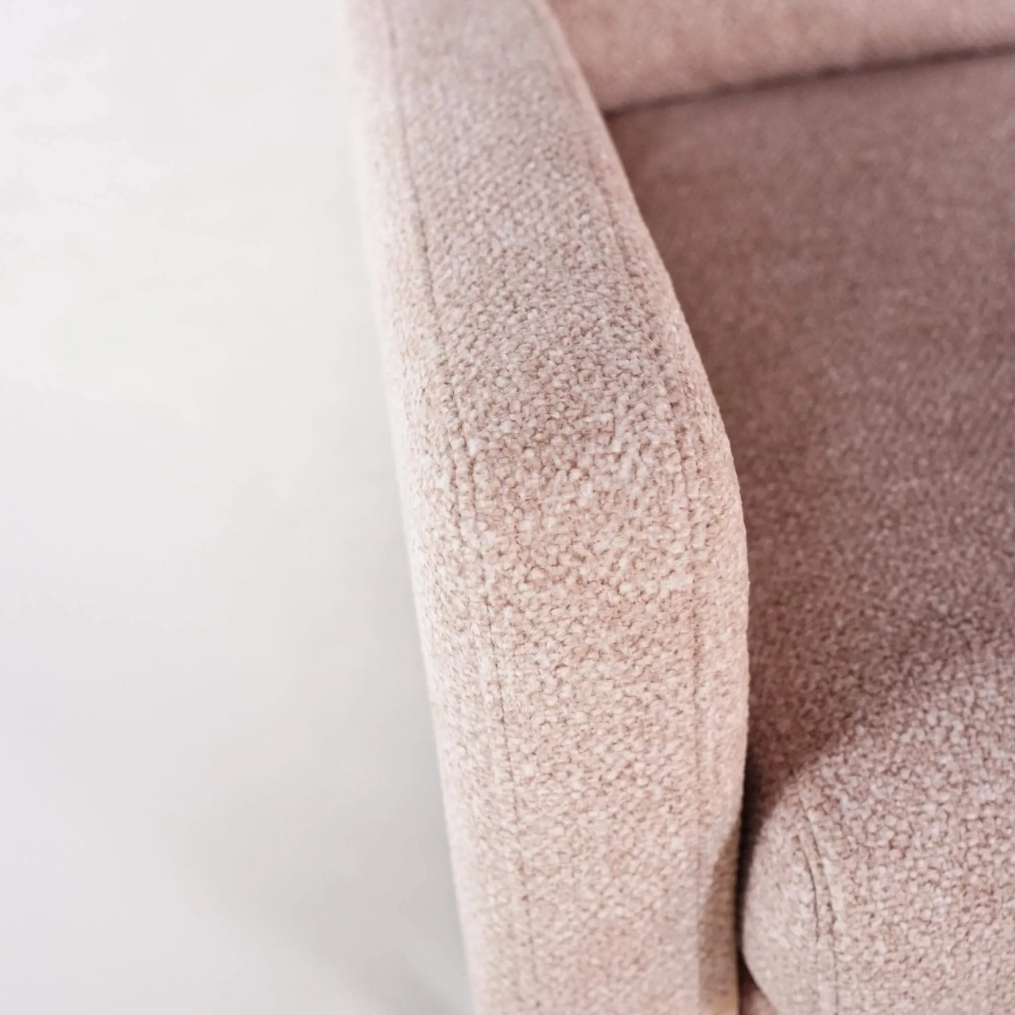 Le tissu sélectionné pour habiller ce canapé design 3 places est un bouclé coloris sable, une matière douce et chaleureuse au toucher raffiné. Ce revêtement, certifié OEKO-TEX®, garantit l’absence de substances nocives et offre une résistance à la lumière de niveau 4, gage de durabilité. Le bouclé, au relief discret et texturé, évoque une atmosphère cocooning tout en conservant une allure résolument contemporaine. Nous avons choisi ce tissu pour son équilibre entre confort et caractère, ainsi que pour sa facilité d’entretien au quotidien.
