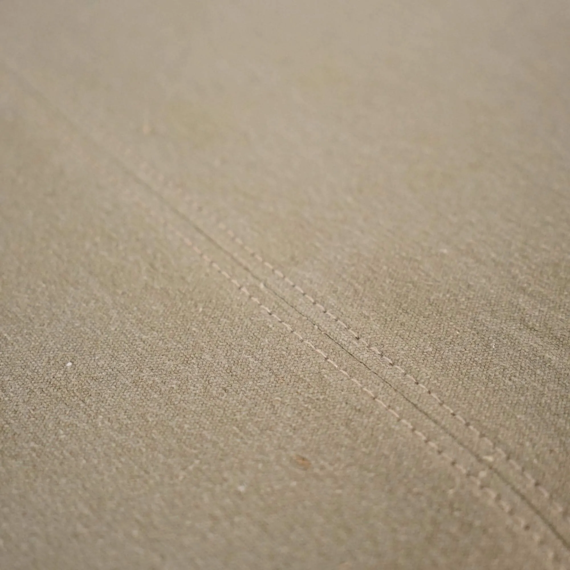 L’assise de notre banc en bois massif et tissu kaki Soline, d’une hauteur de 46 cm, est garnie d’un tissu kaki doux au toucher et fixée par une rangée régulière de clous décoratifs. Ce détail de finition, à la fois discret et élégant, souligne la tension parfaite du revêtement et apporte une note d’artisanat authentique. Le confort s’apprécie autant par la souplesse de l’assise que par la solidité de sa structure, pensée pour un usage quotidien.