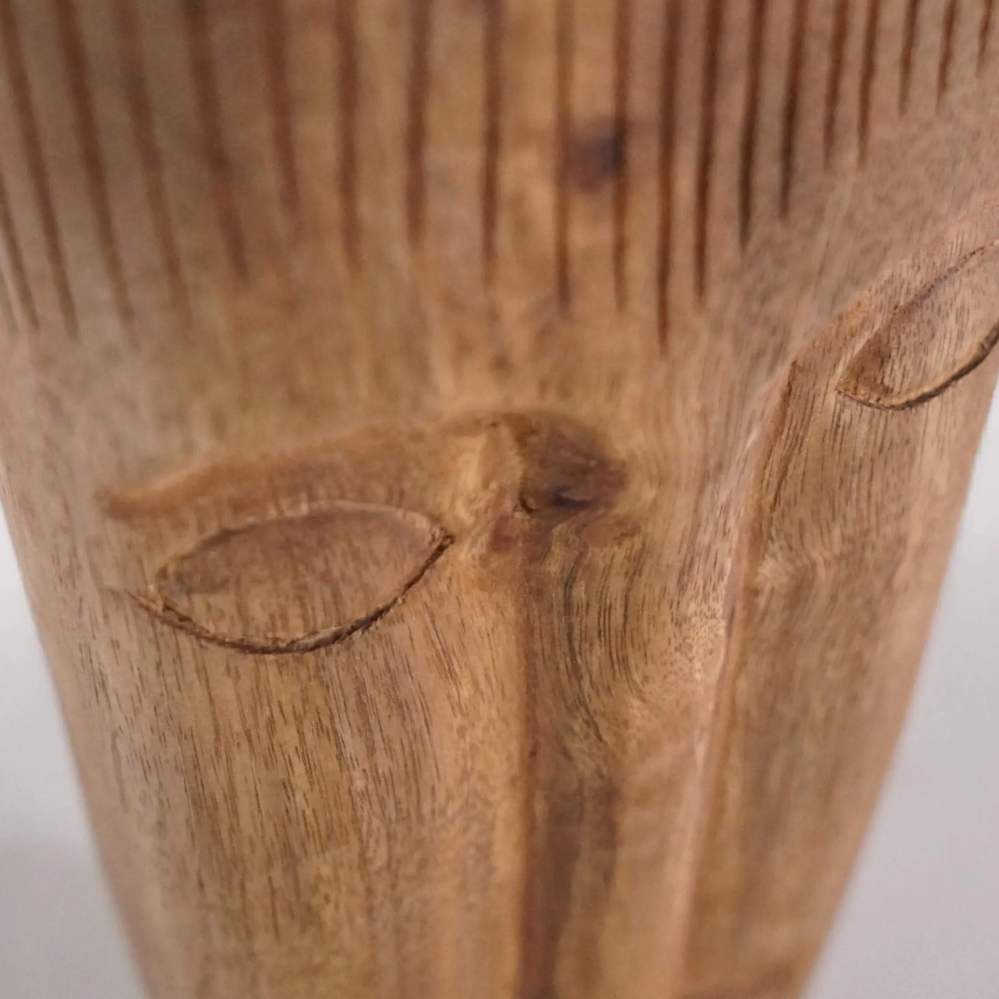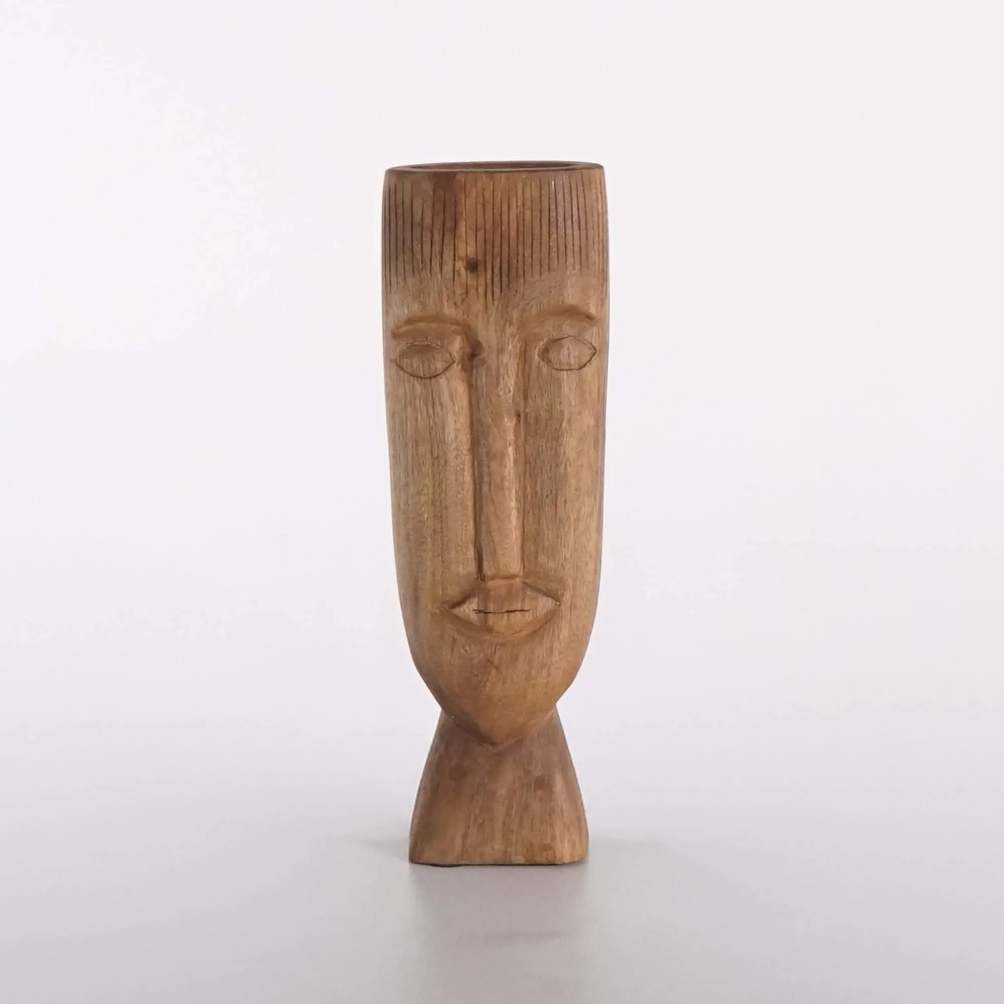 Haute de 43 cm, cette statue décorative en bois sculpté s’inspire de l’art primitif tout en s’inscrivant dans une esthétique contemporaine. Son visage stylisé, aux traits épurés et aux lignes douces, évoque la sérénité et la présence silencieuse des totems anciens. Les courbes délicates et la texture naturellement mate du matériau rappellent le travail du bois, bien que chaque pièce conserve une expression propre, résultat d’une fabrication entièrement artisanale.