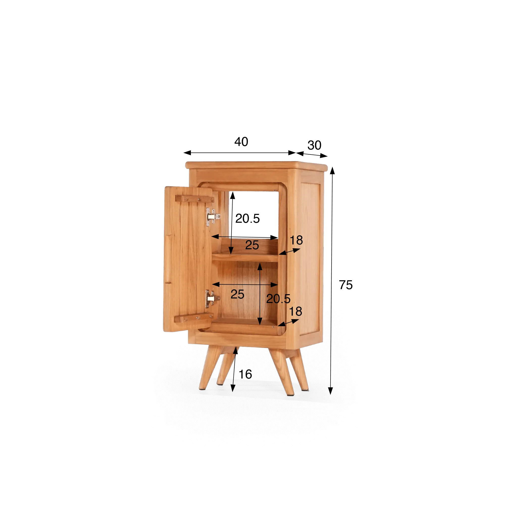 Compact et pensé pour les petits espaces comme pour les salles de bain plus généreuses, ce meuble lave mains en bois massif de 75 cm de haut offre un rangement intérieur fonctionnel. Derrière la porte battante, deux espaces de 25 cm de largeur et 20,5 cm de hauteur chacun permettent d’accueillir aisément les produits du quotidien, tandis que la profondeur utile de 18 cm assure un rangement optimal sans encombrer l’espace autour du meuble. Son plateau de 40 × 30 cm accueille naturellement une vasque à poser, créant une silhouette épurée et harmonieuse.