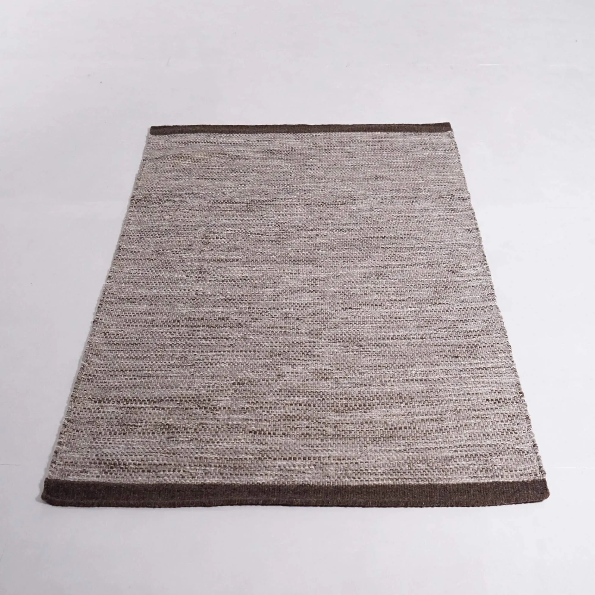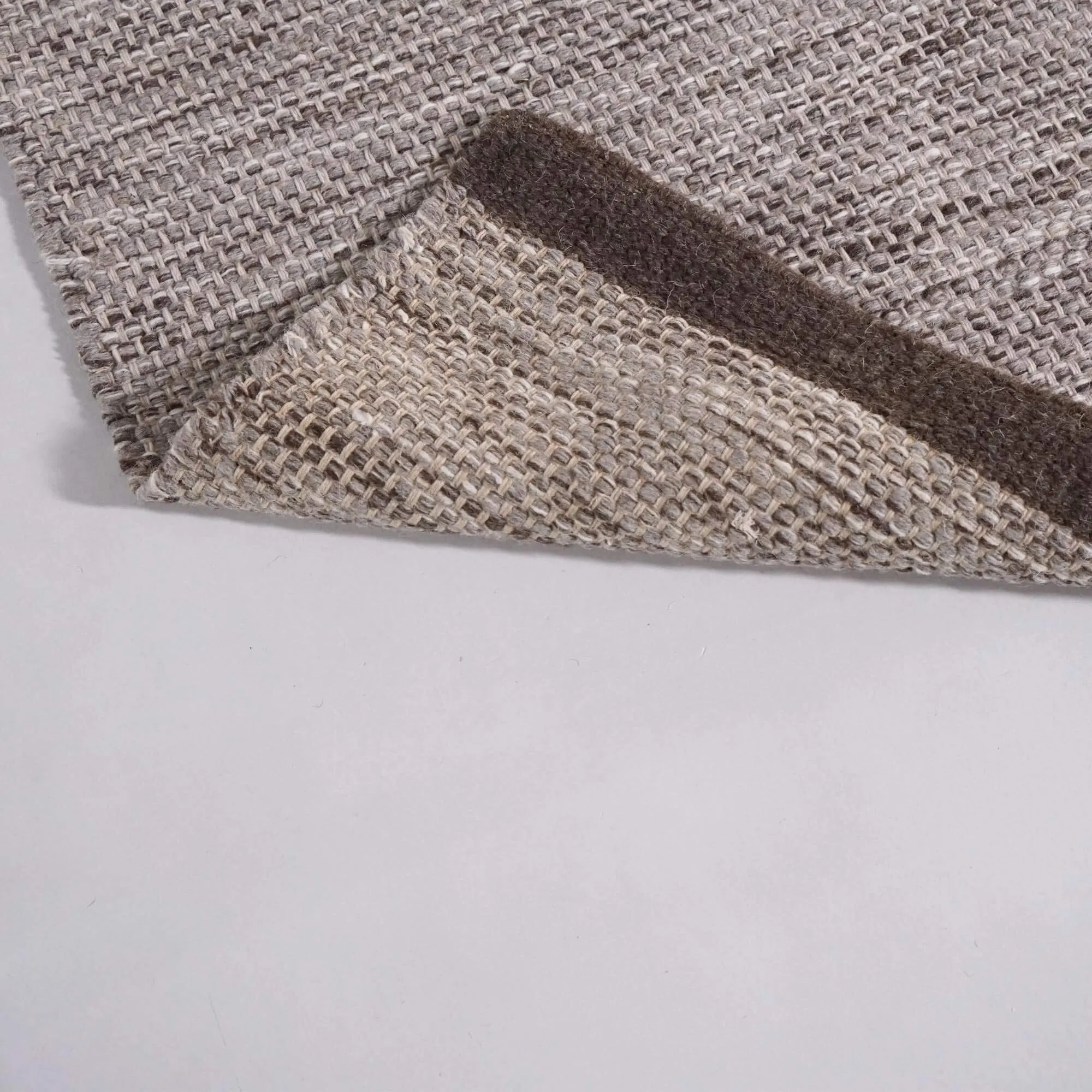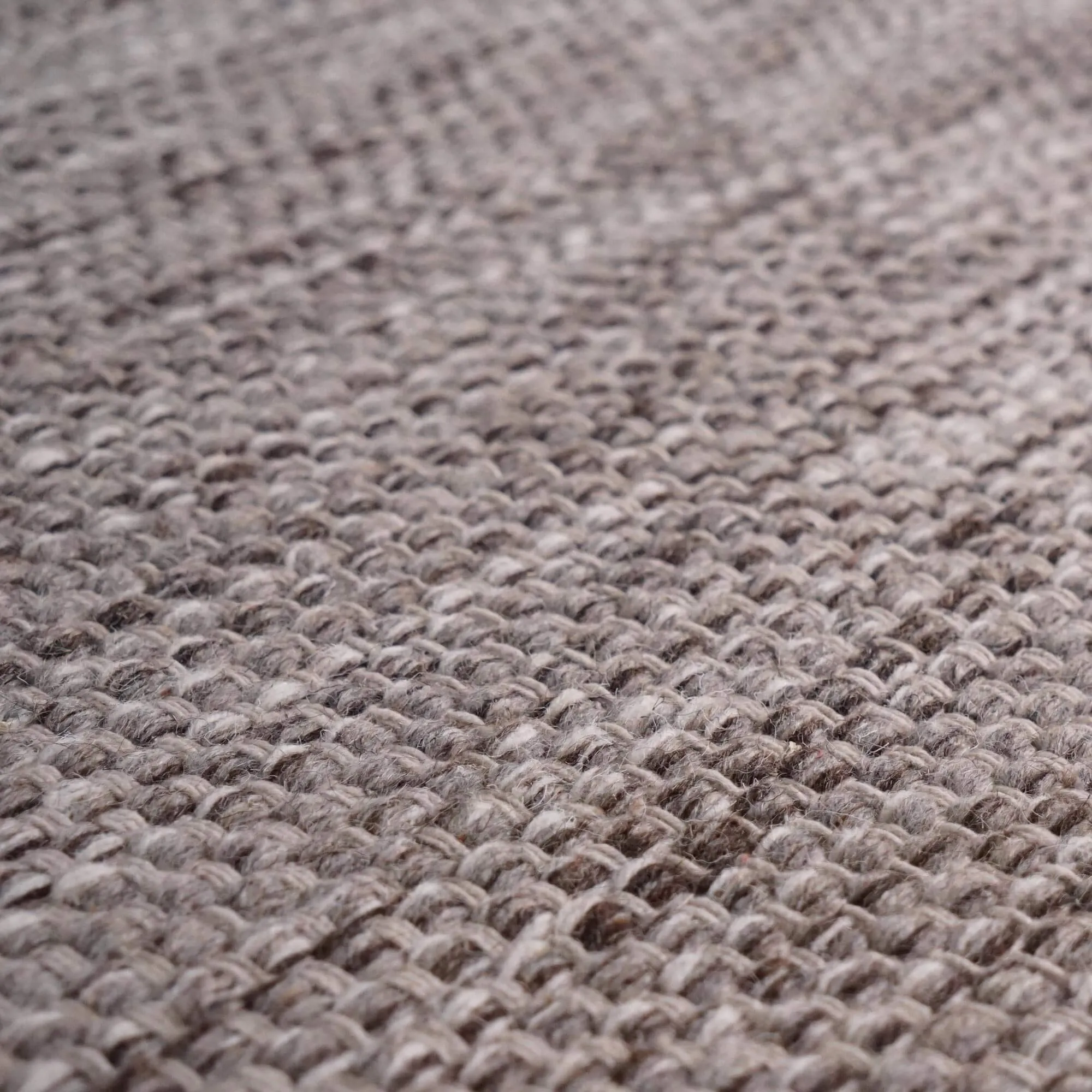 Lors de la conception de ce tapis en laine, nous avons porté une attention particulière au choix des fibres et à leur équilibre. La laine, majoritaire, apporte une sensation enveloppante et une chaleur visuelle immédiate, tandis que le coton vient alléger le tissage et affiner le rendu. Ce mélange crée une surface vivante, ponctuée de nuances subtiles de brun et de beige, qui évoluent au fil de la lumière et donnent à ce tapis en laine une présence authentique, jamais figée. Le tissage manuel, volontairement irrégulier, révèle le geste de l’artisan et confère à chaque pièce un caractère singulier.