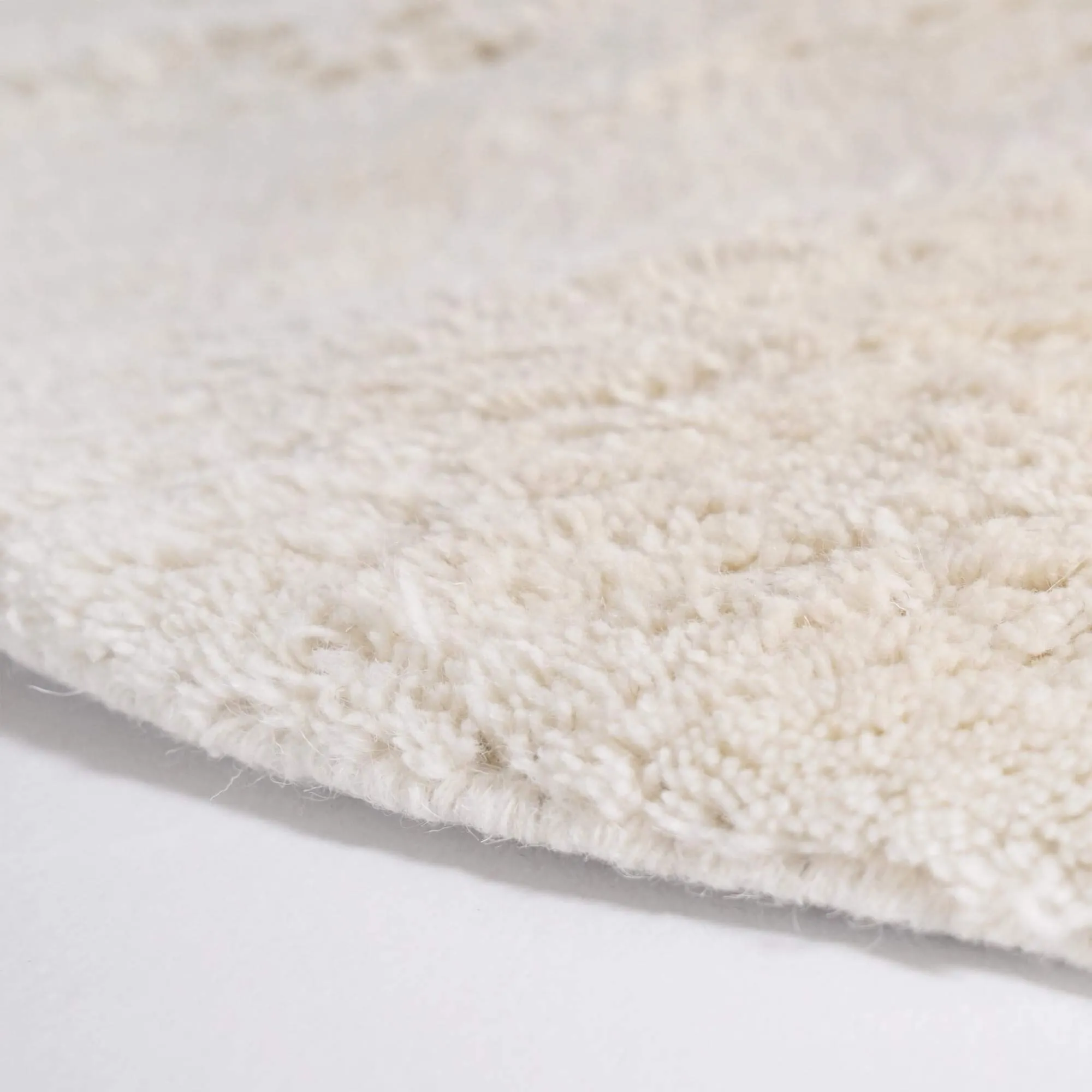 Pour ce tapis en laine rond, nous avons choisi un blanc nuancé, jamais froid, pensé pour dialoguer avec des matériaux bruts comme le bois, le cuir ou le métal, mais aussi avec des intérieurs plus classiques aux teintes feutrées. Ce coloris met en valeur la trame de la laine et souligne le travail artisanal, visible dans les légères variations de texture qui rendent chaque pièce unique.