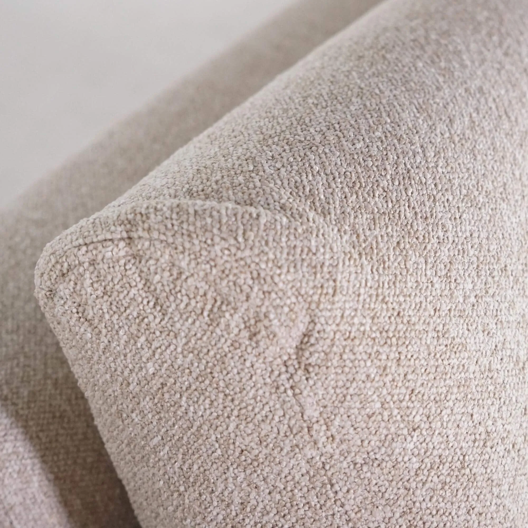 Nous avons choisi un tissu texturé de haute qualité, à la fois doux et résistant, qui se distingue par son relief subtil et sa durabilité pour habiller ce canapé d'angle 4 places avec méridienne gauche. Testé pour sa robustesse, il résiste à plus de 70 000 cycles de frottement Martindale, garantissant une longévité remarquable au quotidien. Le coloris, clair et naturel, apporte une luminosité intemporelle à la pièce et se marie aisément avec différentes palettes décoratives.