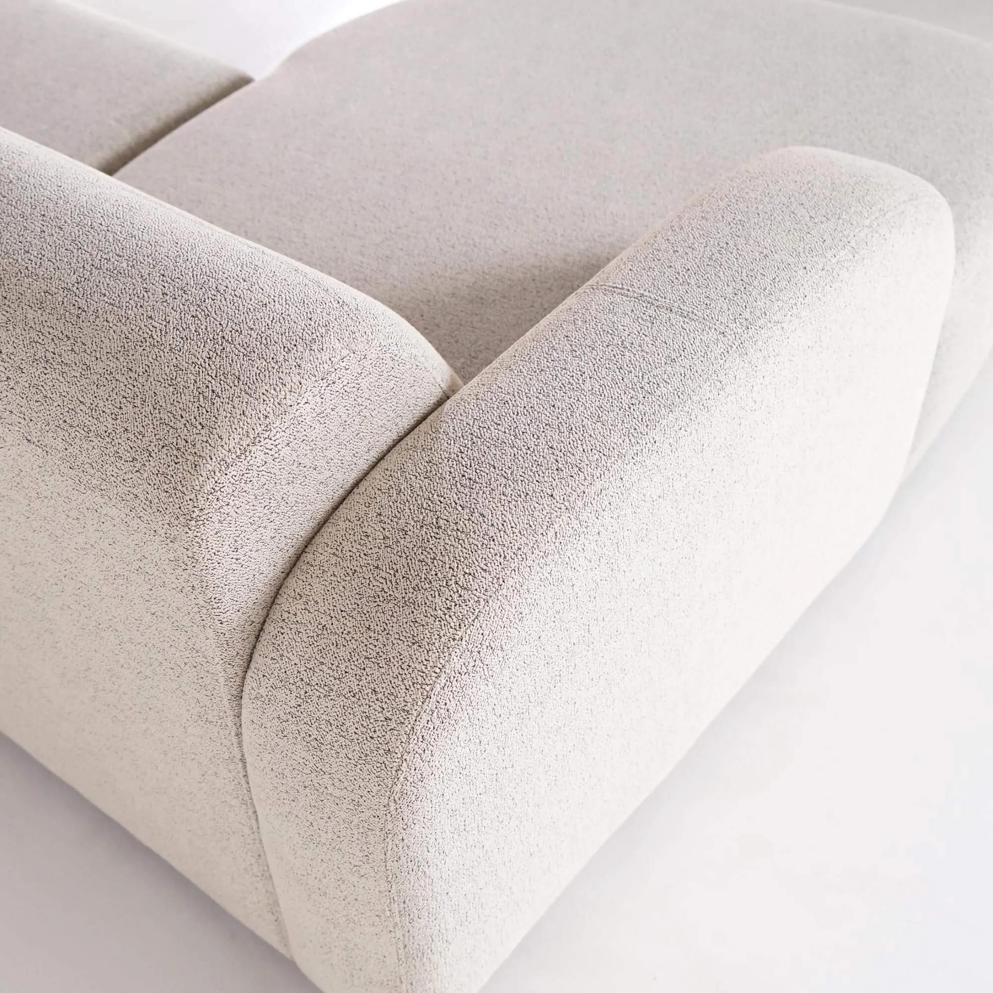 Le choix de pieds discrets en plastique dur souligne la silhouette du canapé tout en assurant stabilité et robustesse tandis que le garnissage composé de ressorts ensachés et de mousse haute résilience HR 3534, reconnue pour sa souplesse, sa durabilité et sa capacité à reprendre sa forme après usage assurent un confort absolu. Le choix de tissu couplé à ces choix techniques renforce le caractère intemporel du modèle. Nos designers ont volontairement travaillé sur l’idée d’un confort simple et universel, un canapé d'angle 4 places avec méridienne gauche qui ne se contente pas d’habiller un salon, mais qui l’anime par sa présence sculpturale et sa capacité à créer une atmosphère apaisante.