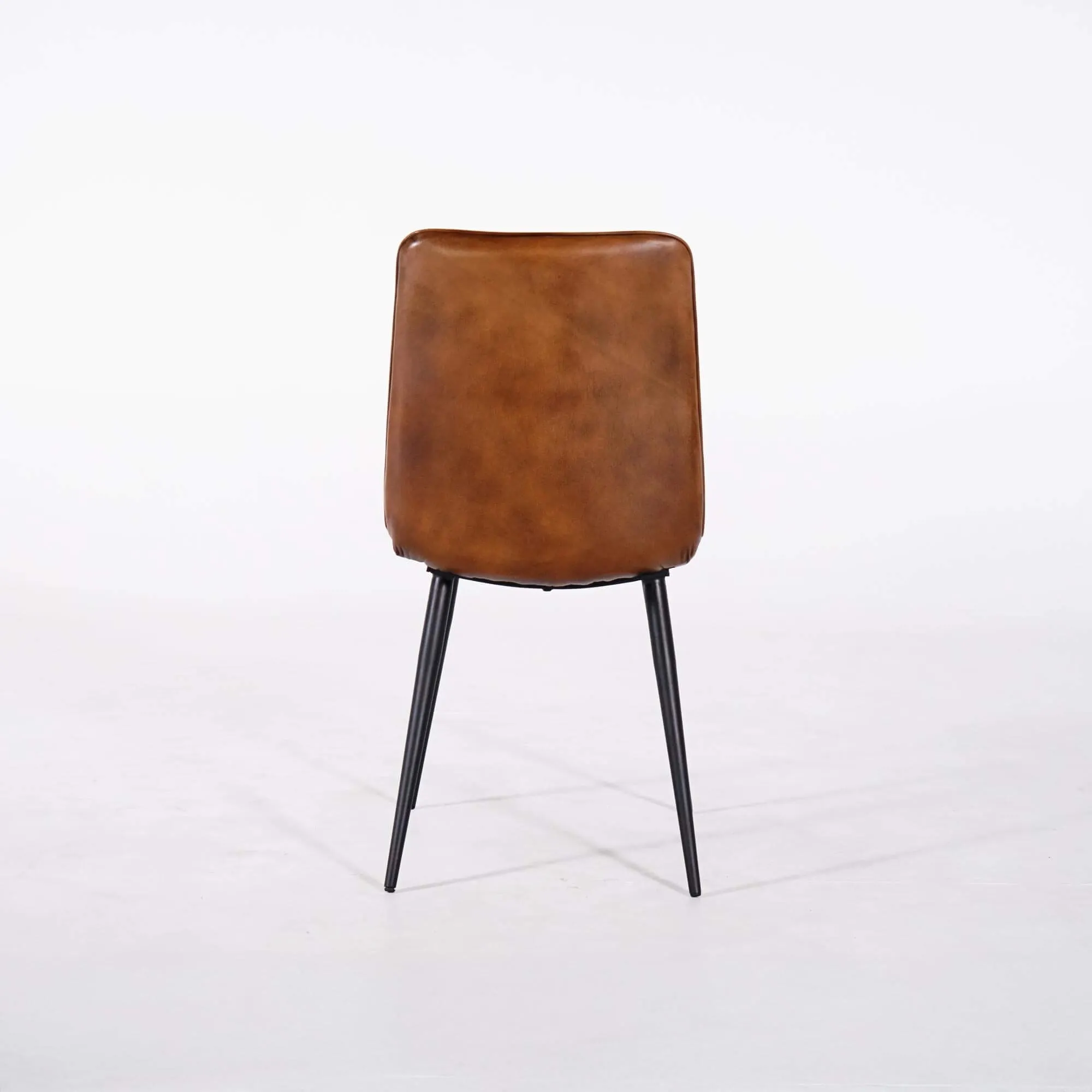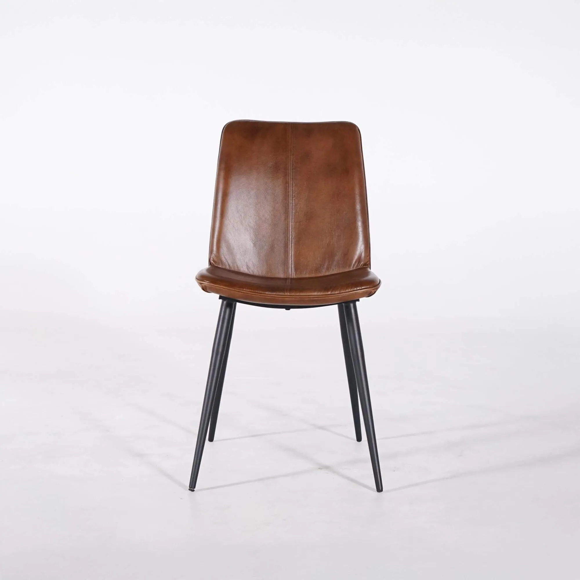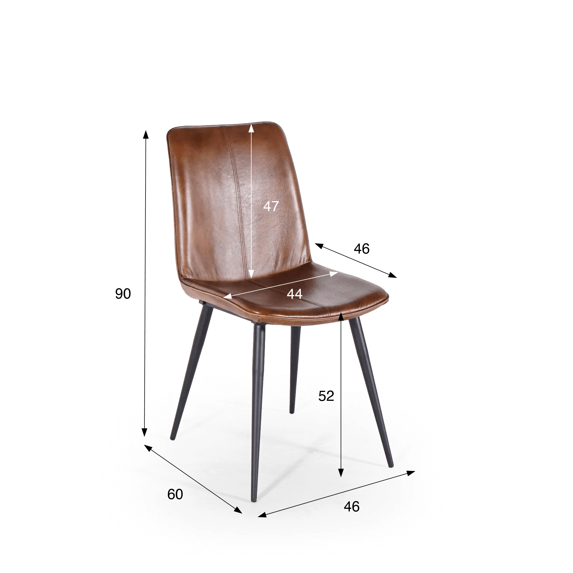 Nous avons choisi un piètement en métal noir aux lignes fines pour créer un contraste équilibré avec la chaleur du cuir, tout en assurant stabilité et durabilité. Avec une hauteur totale d’environ 90 cm et une profondeur globale proche de 60 cm, la chaise vintage en cuir marron Dock s’intègre facilement autour d’une table sans alourdir visuellement l’espace.