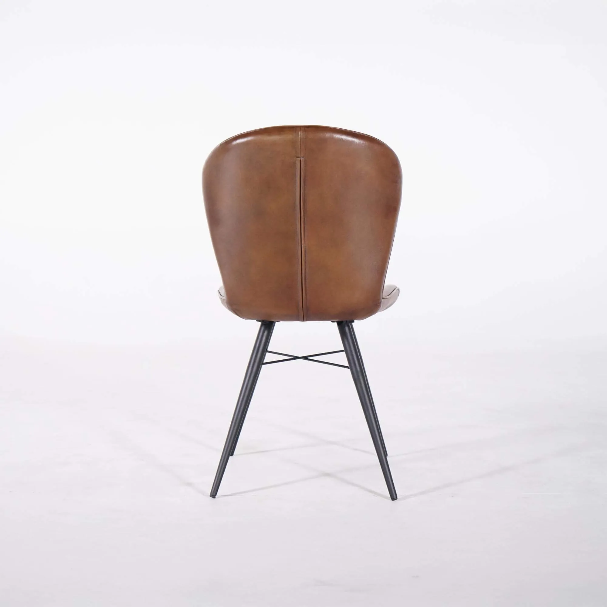 Pensée pour accompagner naturellement les espaces de vie contemporains comme les intérieurs plus éclectiques, la chaise vintage en cuir véritable District exprime notre volonté de revisiter l’esprit vintage avec une approche confortable et durable. Nous avons imaginé une assise capable d’offrir une présence visuelle chaleureuse tout en restant facile à intégrer autour d’une table à manger ou dans un coin bureau. Son cuir véritable de buffle pleine fleur révèle un toucher souple et vivant, avec des nuances cognac profondes qui se patineront avec le temps, rendant chaque pièce encore plus personnelle au fil des années.