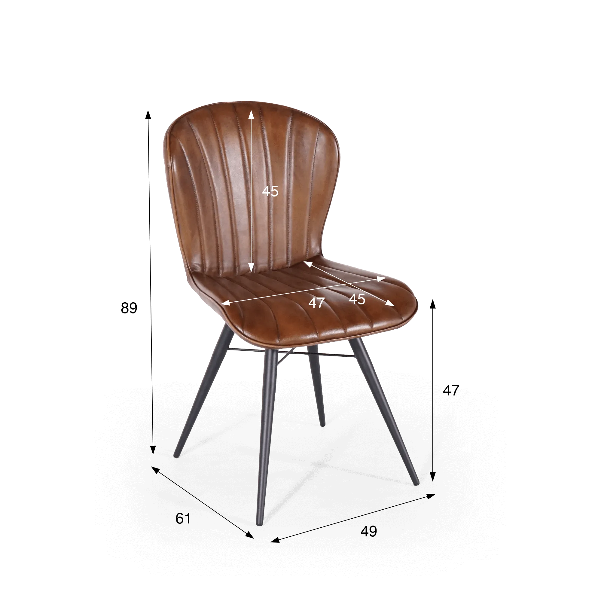 Sur cette chaise vintage en cuir véritable, le travail des surpiqûres verticales accompagne naturellement la courbure du dossier et soutient le dos avec justesse. Avec une hauteur totale d’environ 89 cm et une hauteur d’assise proche de 47 cm, la chaise trouve facilement sa place sous la majorité des tables standards. L’assise généreuse, d’environ 47 cm de largeur pour 45 cm de profondeur utile, permet de s’installer confortablement lors de repas prolongés ou de moments de travail improvisés à la maison. La structure interne et le rembourrage en mousse polyuréthane haute résilience de cette chaise vintage en cuir véritable assurent un maintien durable sans rigidité excessive.