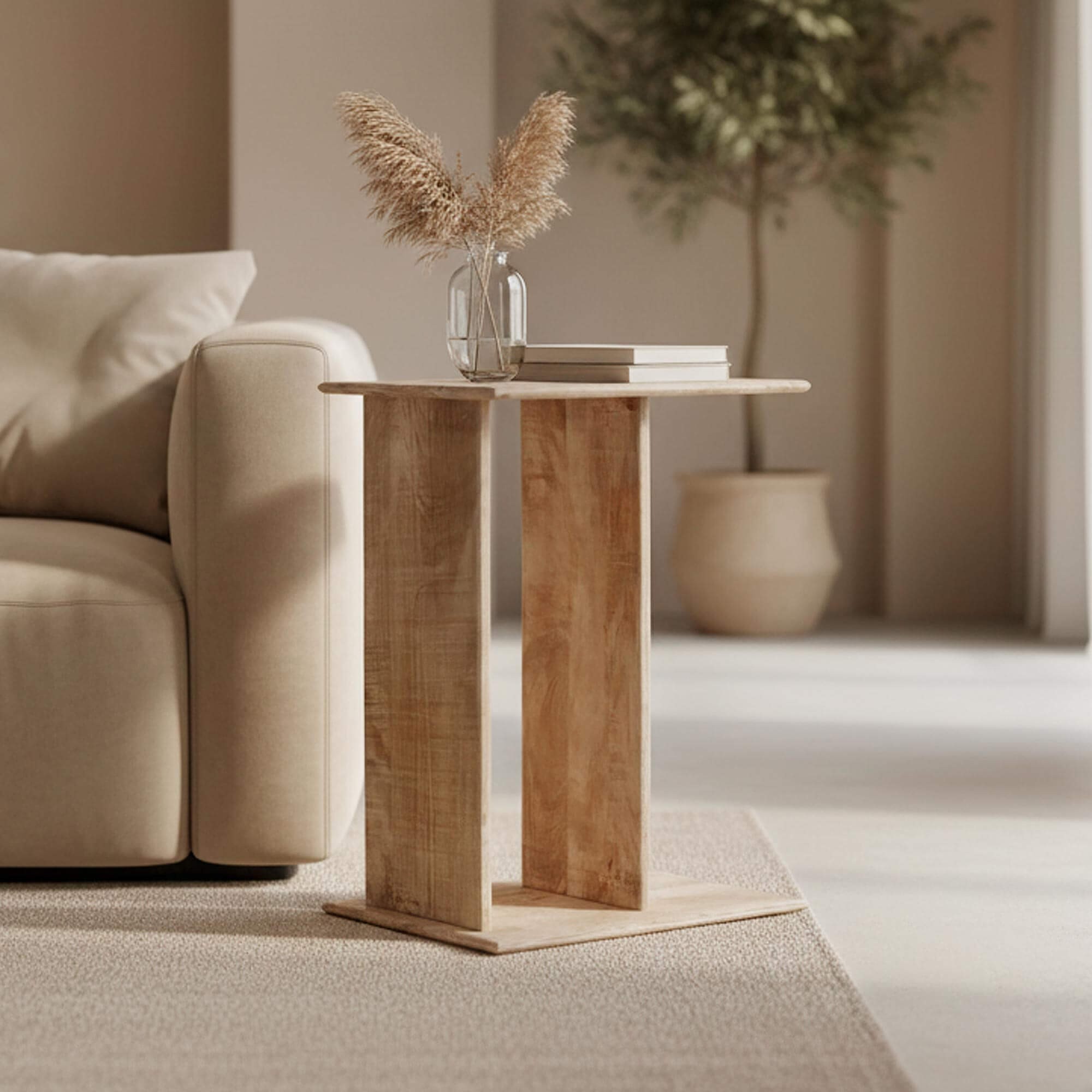 Livré déjà monté, le bout de canapé en bois massif Luno trouve naturellement sa place dans une atmosphère chaleureuse, un salon minimaliste ou un intérieur au charme plus bohème. Il accompagne le moment du café, met en valeur un vase en transparence ou devient un petit socle d’exposition improvisé.