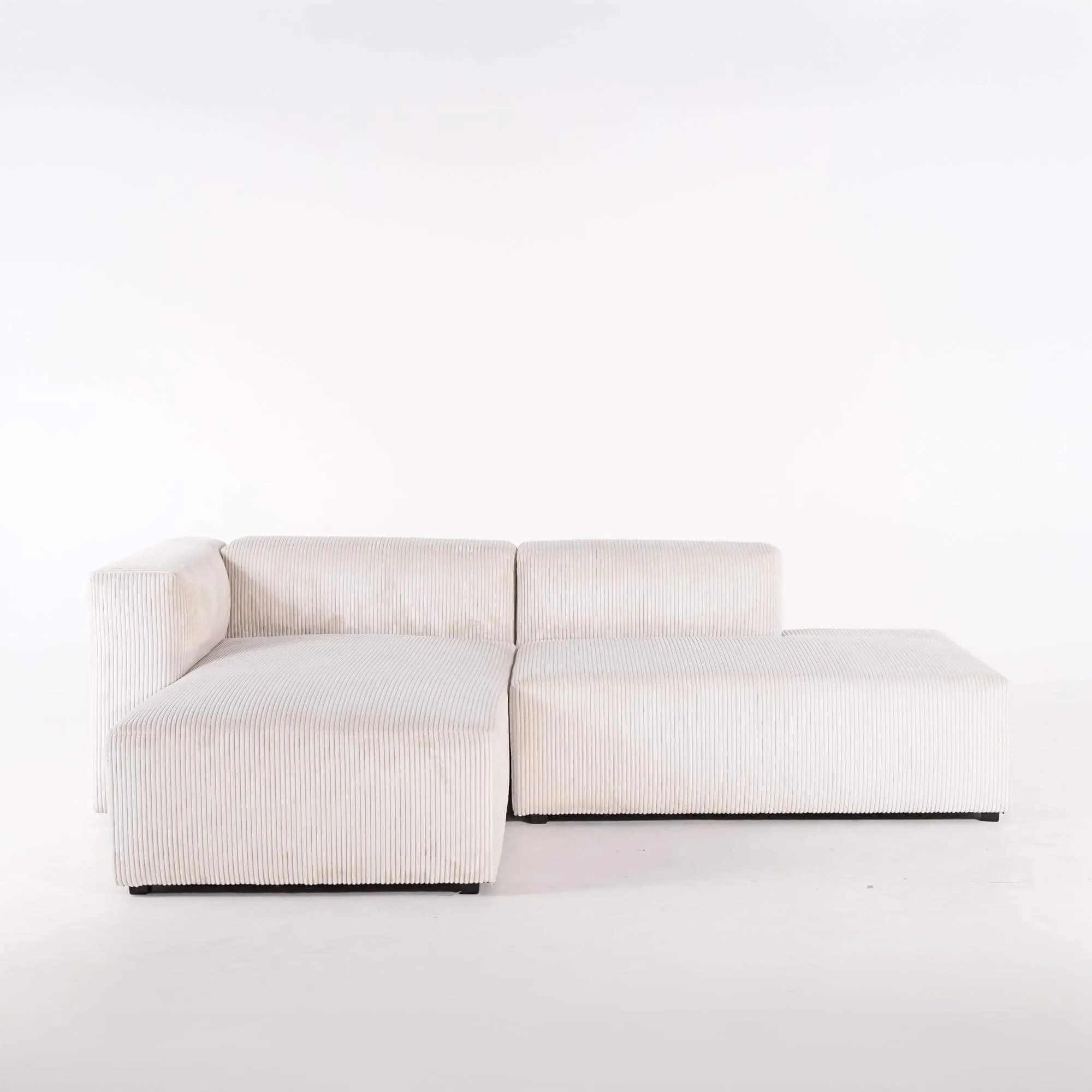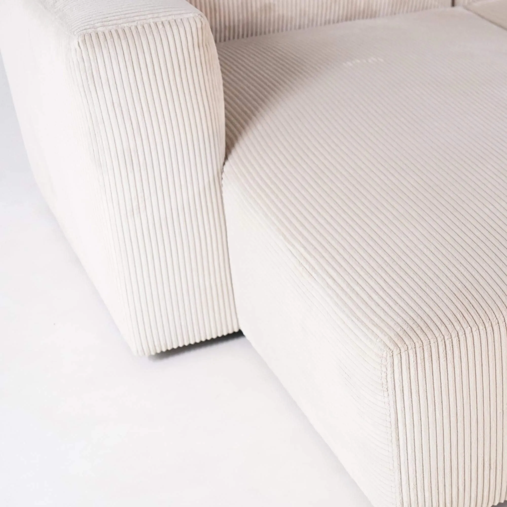 Sous la ligne minimaliste de ce canapé d'angle 3 places avec méridienne gauche, nous avons travaillé une structure robuste certifiée bois responsable, associée à un assemblage de mousses haute résilience. Le siège combine une couche de mousse PU de 40 mm et une mousse HR de 70 mm sur ressorts Nozag pour une portance durable et des reprises élastiques régulières ; le dossier est garni d’une mousse calibrée pour soutenir sans raideur. Les modules qui composent le canapé arrivent dans des colis séparés et se relient simplement par clips métalliques double, avec des pieds techniques discrets qui maintiennent une silhouette très basse.