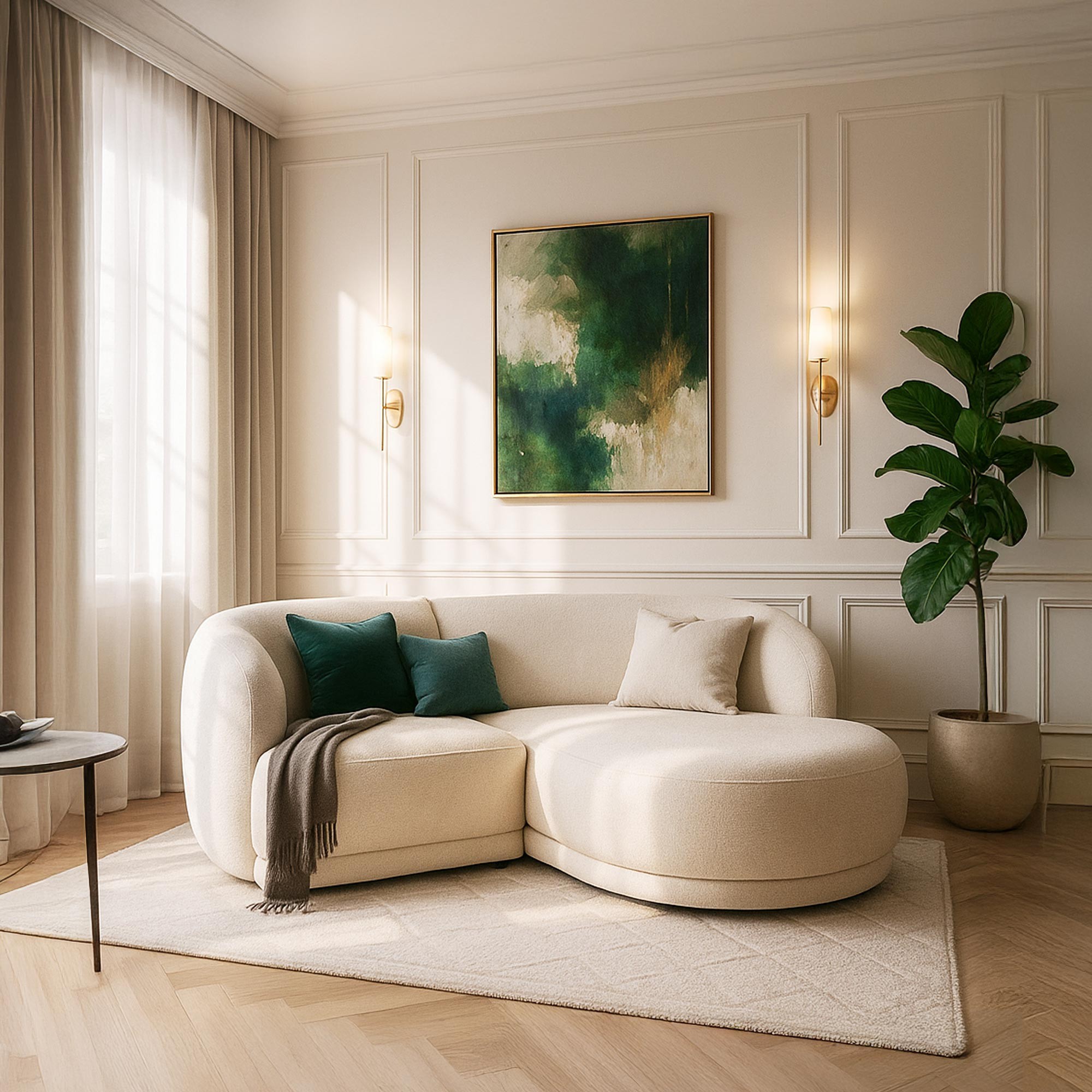 Chaque détail de ce canapé d'angle 3 places avec méridienne droite a été pensé pour équilibrer esthétique et fonctionnalité : des dossiers subtilement galbés qui épousent la courbe du corps aux coussins généreux qui suggèrent le repos. Nous avons voulu que ce canapé se distingue par sa qualité de finition artisanale et par sa capacité à transformer un intérieur. Placé dans un salon lumineux aux lignes épurées, il devient le point d’ancrage de la pièce, apportant une atmosphère chaleureuse et contemporaine.
