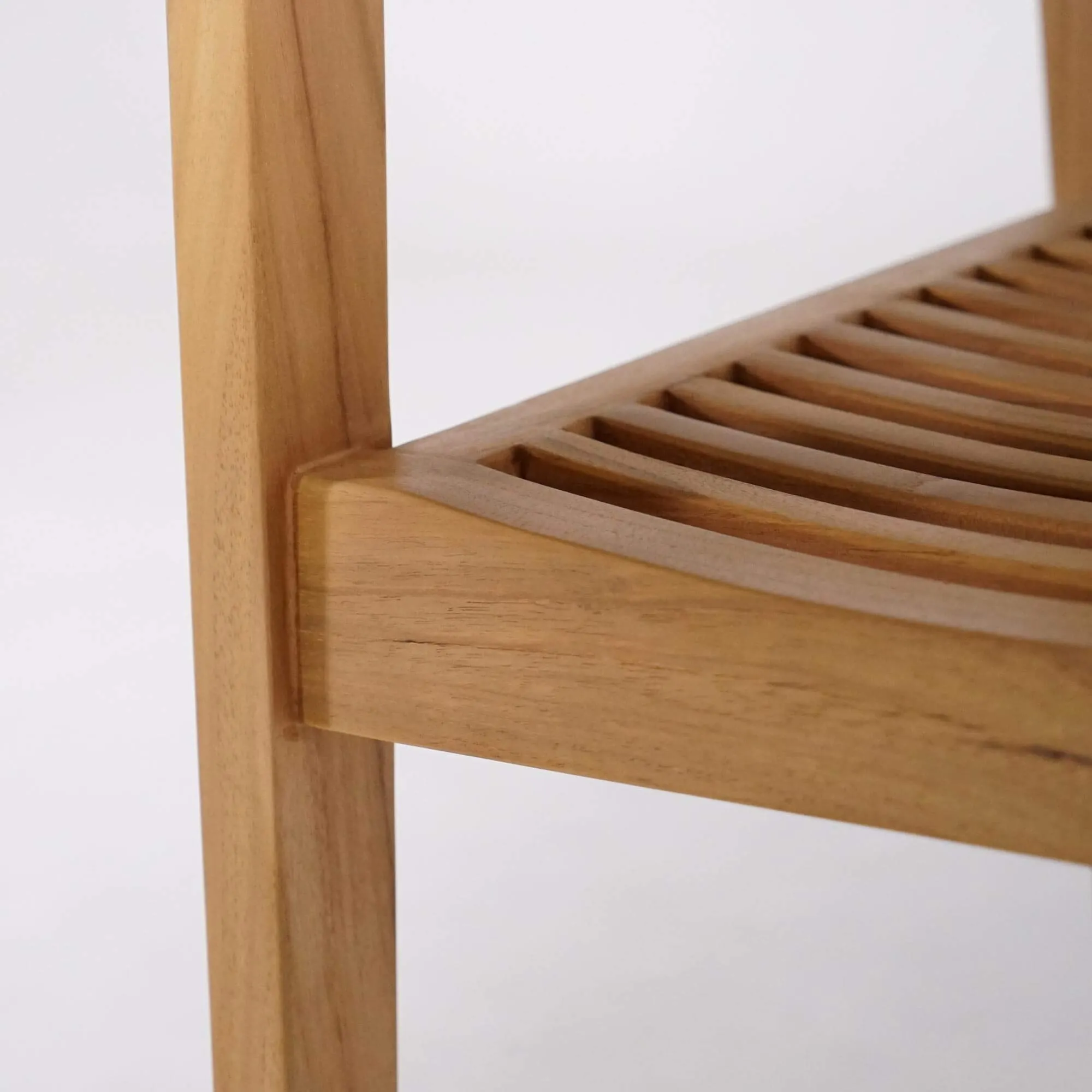 Nous avons choisi de réaliser la chaise de jardin en bois Naito en teck massif, une essence réputée pour sa robustesse et sa résistance naturelle aux conditions extérieures. Ce bois dense et riche en huiles naturelles offre une excellente durabilité face à l’humidité et aux variations climatiques. Sa teinte chaude, subtilement dorée, révèle un veinage vivant qui capte la lumière et apporte une sensation immédiate de confort visuel. Nous avons pris un soin particulier à la finition du bois afin de préserver son toucher doux et sa texture authentique, fidèle à l’esprit naturel qui guide notre collection outdoor.