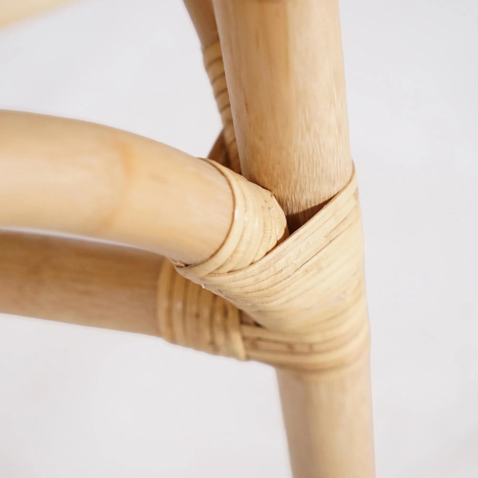 La structure de la chaise en rotin naturel et coussin beige Louna est entièrement réalisée en osier. Ce matériau, que nous affectionnons particulièrement, se distingue par sa souplesse et sa résistance, mais aussi par la chaleur visuelle qu’il apporte à un espace de vie. Les courbes du dossier, subtilement arrondies, encadrent un cannage délicat qui laisse circuler la lumière et révèle le savoir-faire artisanal de sa fabrication. Chaque ligature, chaque jonction du rotin témoigne d’un travail minutieux que nous avons souhaité préserver pour mettre en valeur le caractère vivant de la matière.