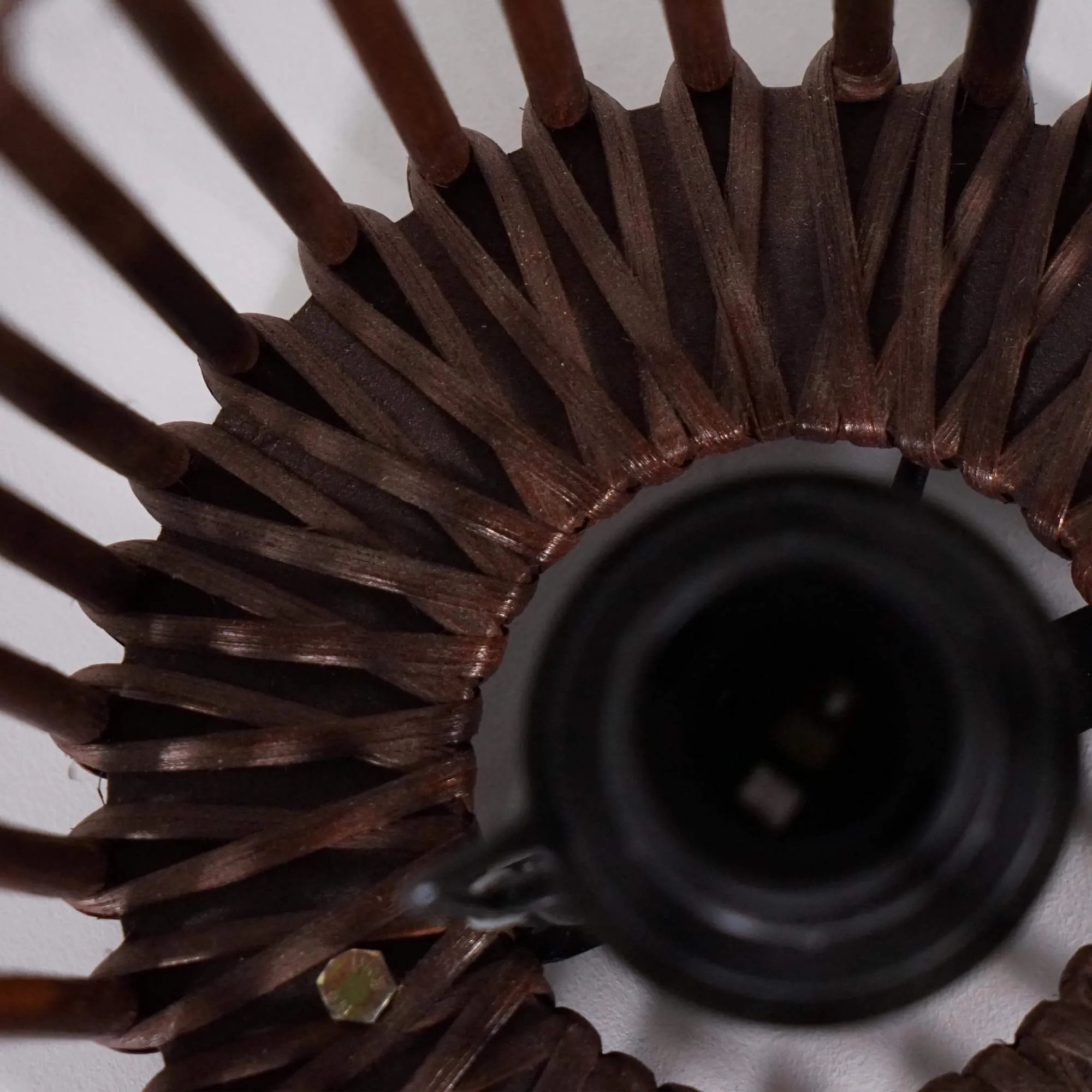 Le choix du rotin n’est pas anodin. Ce matériau naturel possède une souplesse et une résistance qui permettent de réaliser des formes précises tout en conservant un aspect authentique. Chaque pièce révèle de légères variations de teinte et de texture qui rappellent le travail artisanal et donnent à la lampe de table en rotin naturel Rihu une présence chaleureuse. La finition soignée met en valeur la finesse des tiges et la régularité du tressage supérieur, détail dont nous sommes particulièrement fiers.