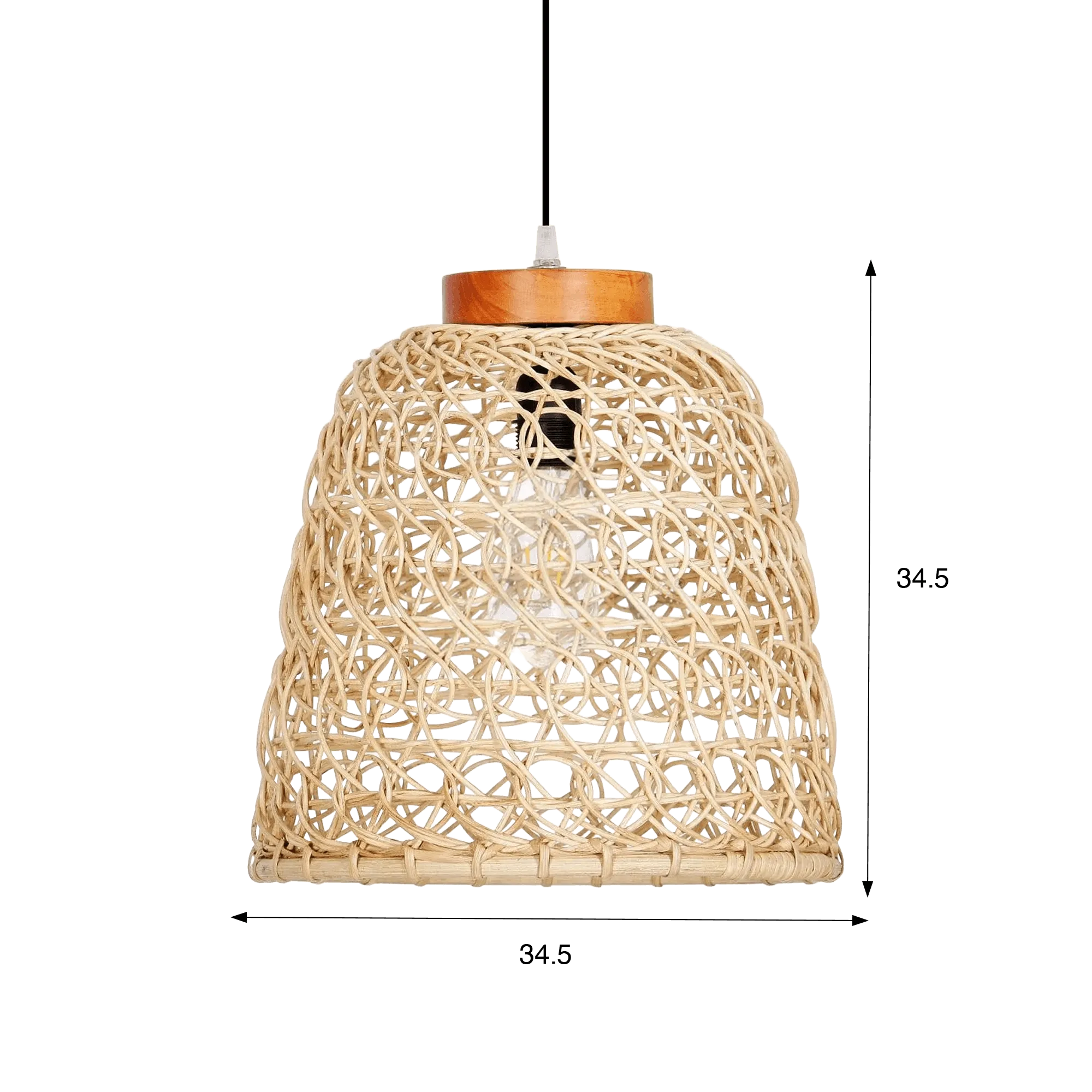Pour cette lampe suspendue en rotin naturel, nos designers ont imaginé une silhouette équilibrée, aux proportions harmonieuses, pensée pour s’intégrer avec naturel dans différents univers décoratifs. Le travail minutieux du rotin met en valeur la richesse de la matière, dont la teinte claire capte la lumière avec douceur. La base supérieure, réalisée en bois massif, apporte une touche de contraste et souligne l’authenticité de l’ensemble. Nous sommes particulièrement fiers du dialogue entre ces deux matériaux, qui associe finesse visuelle et solidité durable.
