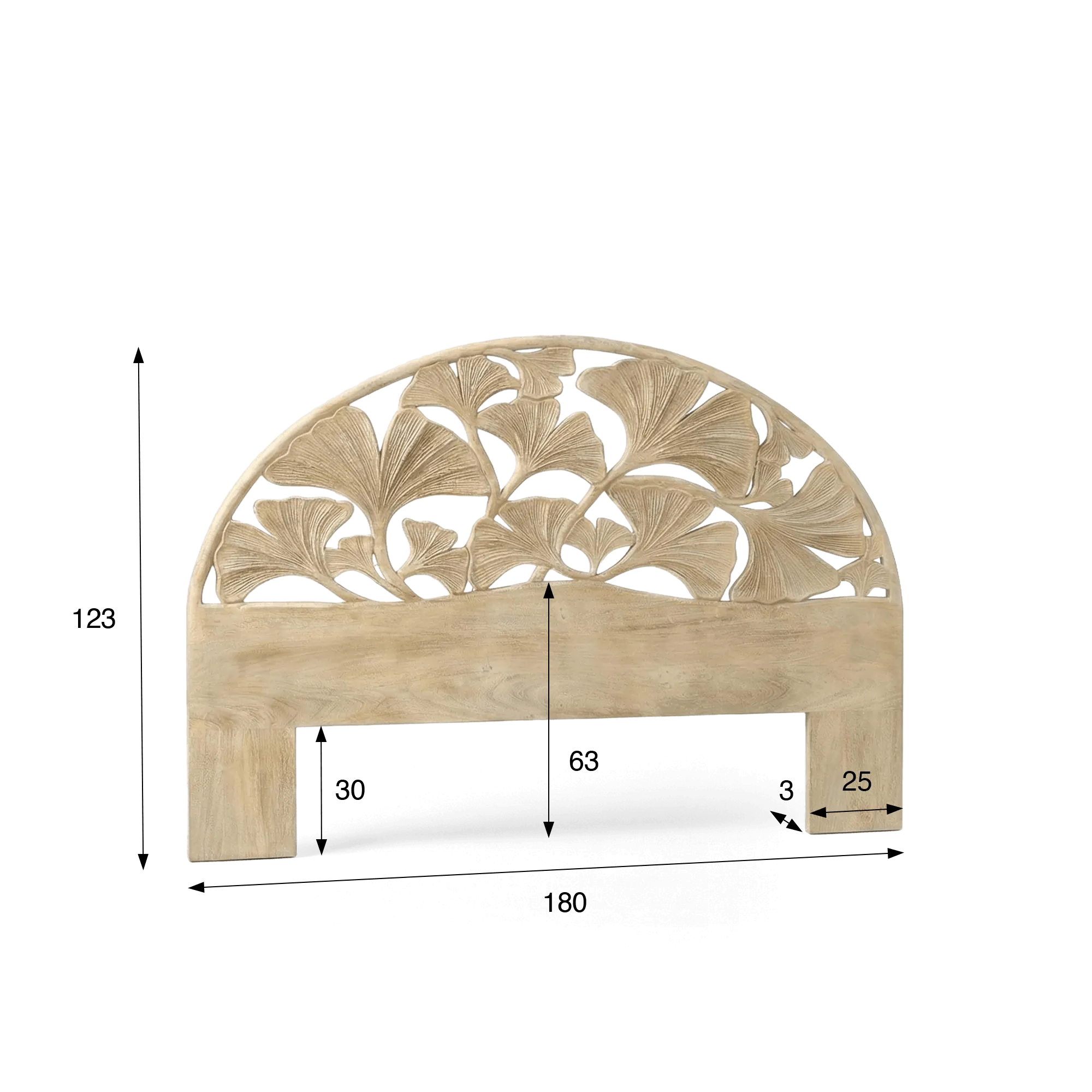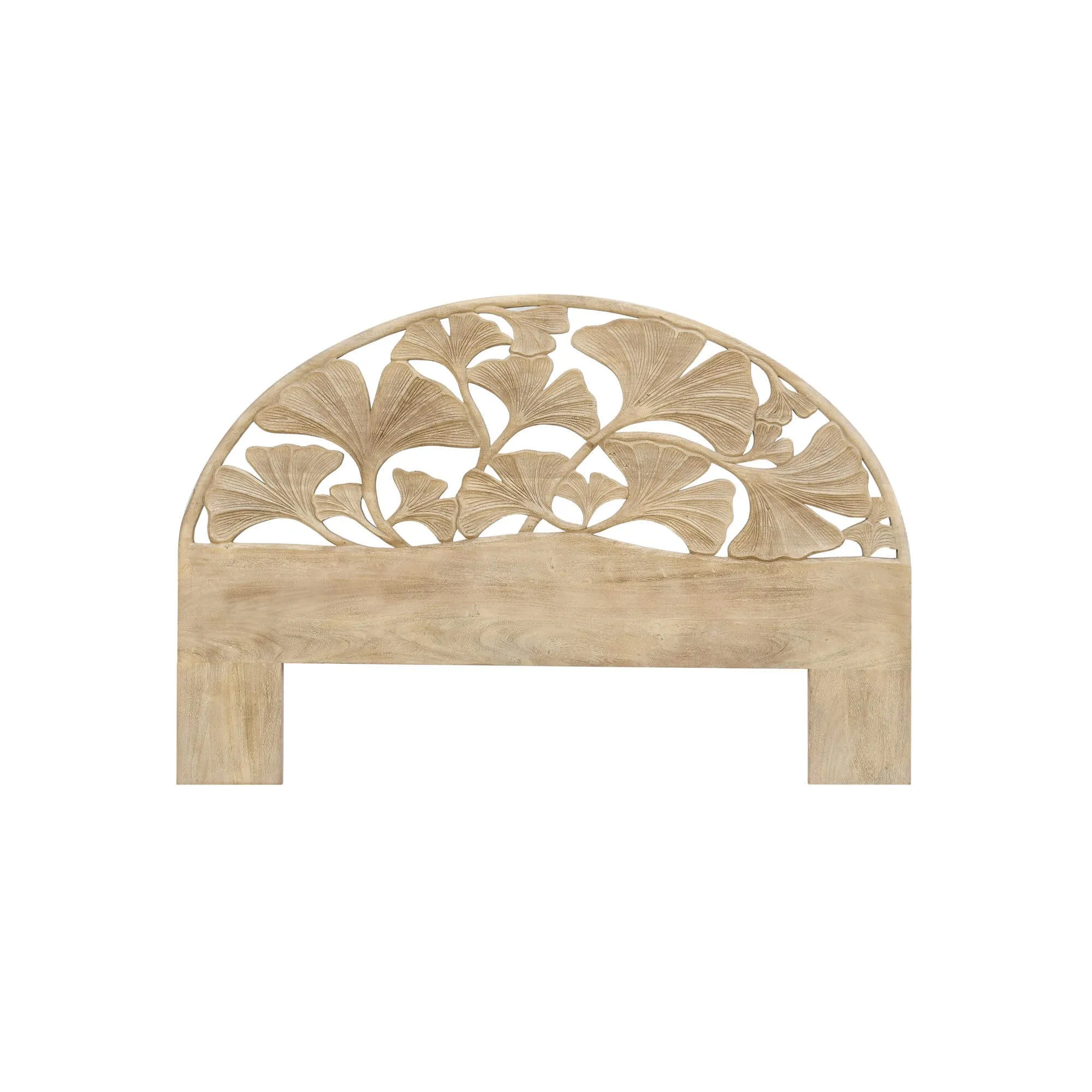 Avec la tête de lit en bois massif d'acacia sculpté 180 cm Valena, nous avons souhaité retranscrire la poésie des formes végétales dans un objet du quotidien, en imaginant un décor inspiré du feuillage de ginkgo, symbole d’équilibre et d’harmonie. Nos designers ont travaillé une silhouette cintrée de 180 cm qui accompagne naturellement la ligne du lit, tandis que le motif ajouré laisse filtrer la lumière pour créer un jeu d’ombres délicat sur le mur. Cette composition apporte une présence apaisante, idéale pour instaurer une atmosphère douce et reposante dans la chambre.