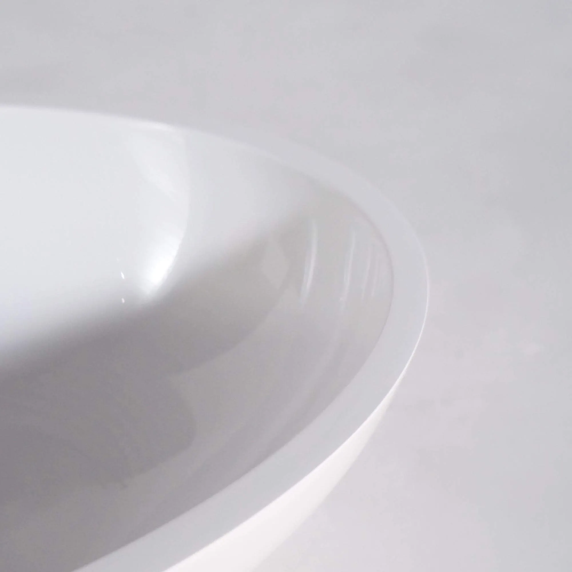 La céramique blanche brillante a été choisie pour sa résistance et pour la qualité de son rendu visuel. Sa surface lisse capte la lumière, révèle de légers reflets et conserve une impression de fraîcheur constante. Ce fini met en valeur les courbes continues de cette vasque à poser en céramique ovale, blanc brillant, sans rupture ni aspérité, et facilite l’entretien jour après jour. Chaque pièce témoigne d’un travail soigné, où la précision des arêtes et la régularité de l’émail sont au cœur de nos exigences.