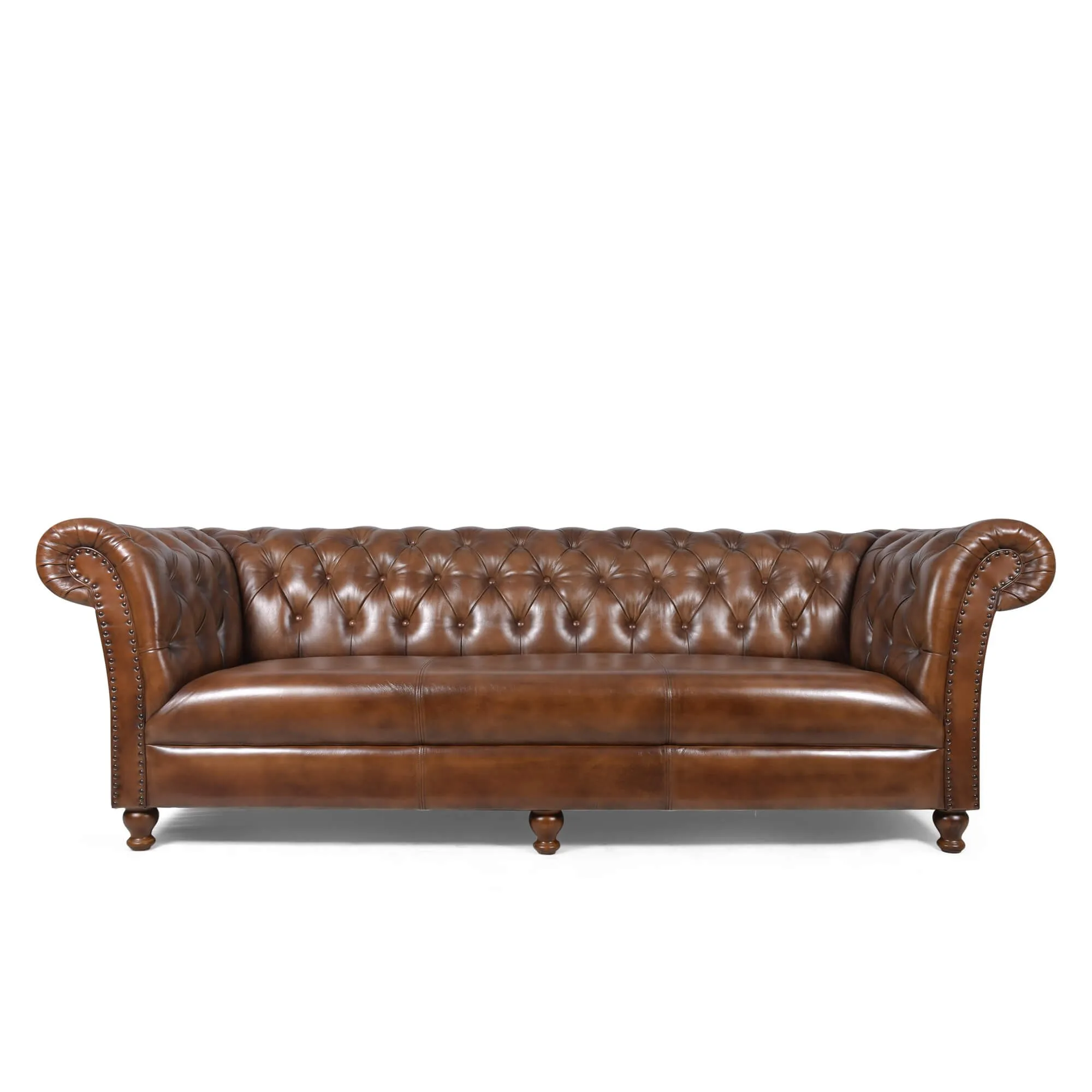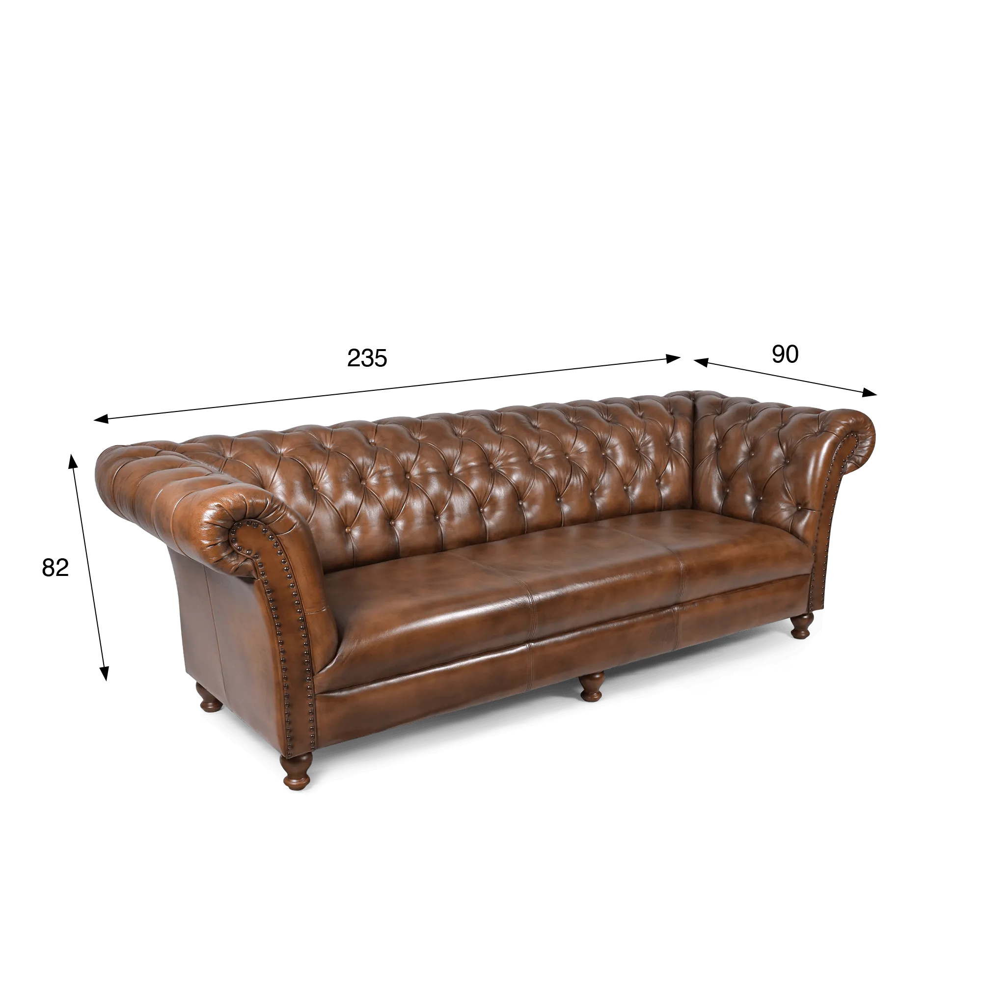 Canapé Chesterfield en cuir véritable marron 3 places - Henry