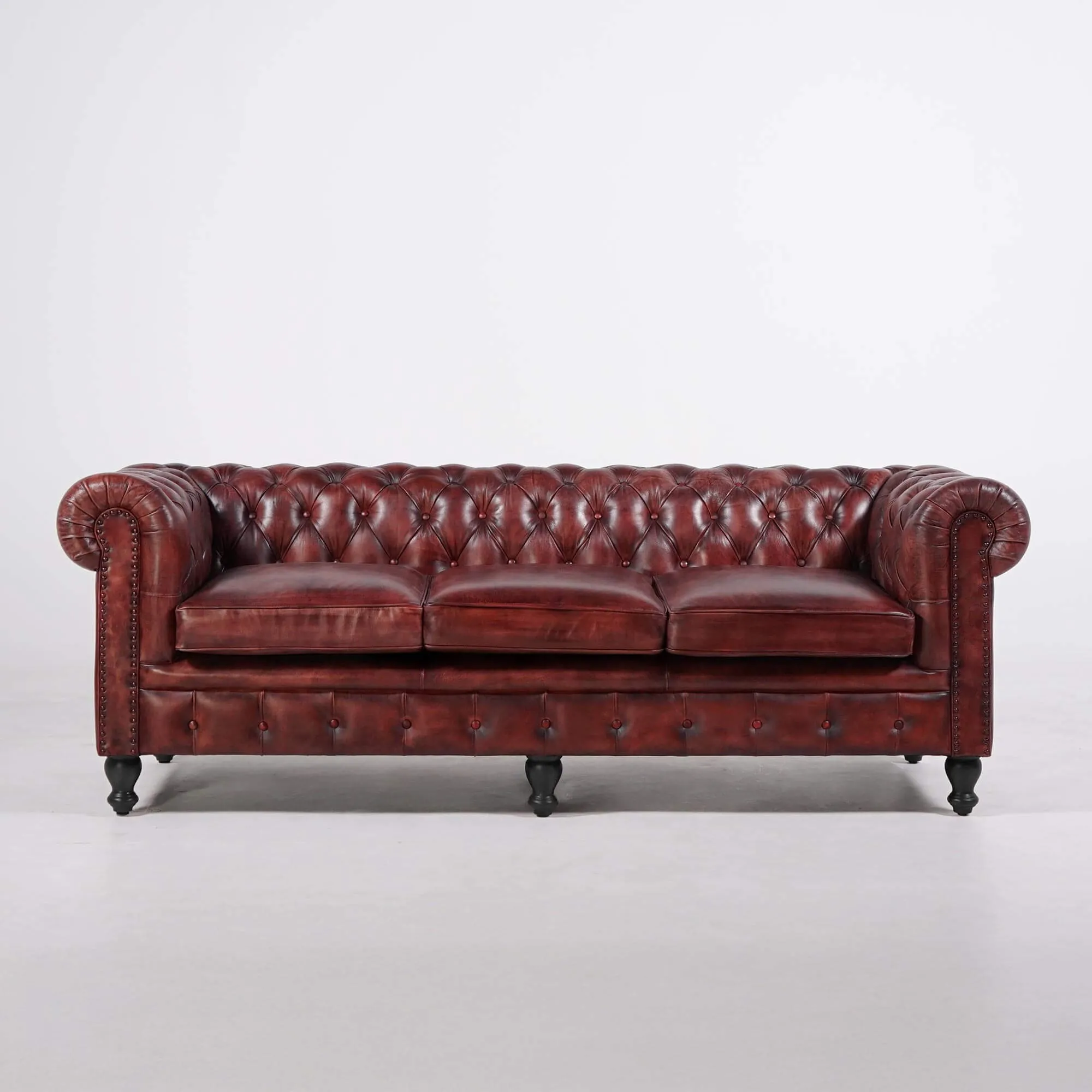 Certaines pièces traversent les époques sans jamais perdre de leur attrait. En travaillant sur le canapé Chesterfield en cuir véritable bordeaux 3 places Edward, nos designers ont cherché à préserver l’âme du Chesterfield traditionnel tout en l’adaptant aux attentes contemporaines, tant en termes de proportions que de confort.