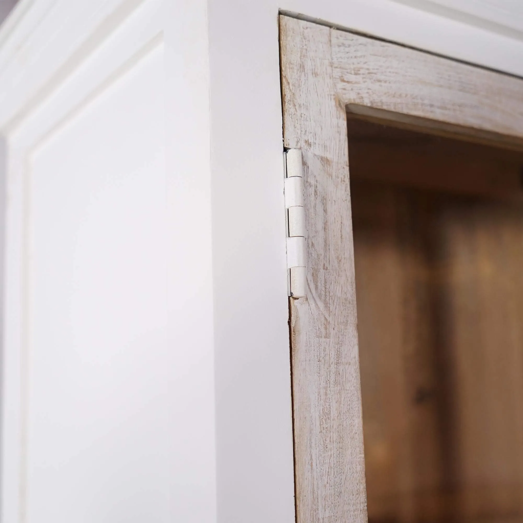 La partie basse de ce buffet vaisselier en bois blanchi a été conçue pour répondre aux besoins du quotidien, avec deux portes battantes dissimulant des espaces de rangement pratiques et trois tiroirs centraux facilitant l’organisation des objets plus discrets. Nous avons porté une attention particulière à l’ergonomie de chaque compartiment afin de proposer un meuble aussi agréable à utiliser qu’à contempler. Le toucher du bois, légèrement texturé, rappelle le travail artisanal que nous valorisons dans chacune de nos créations.
