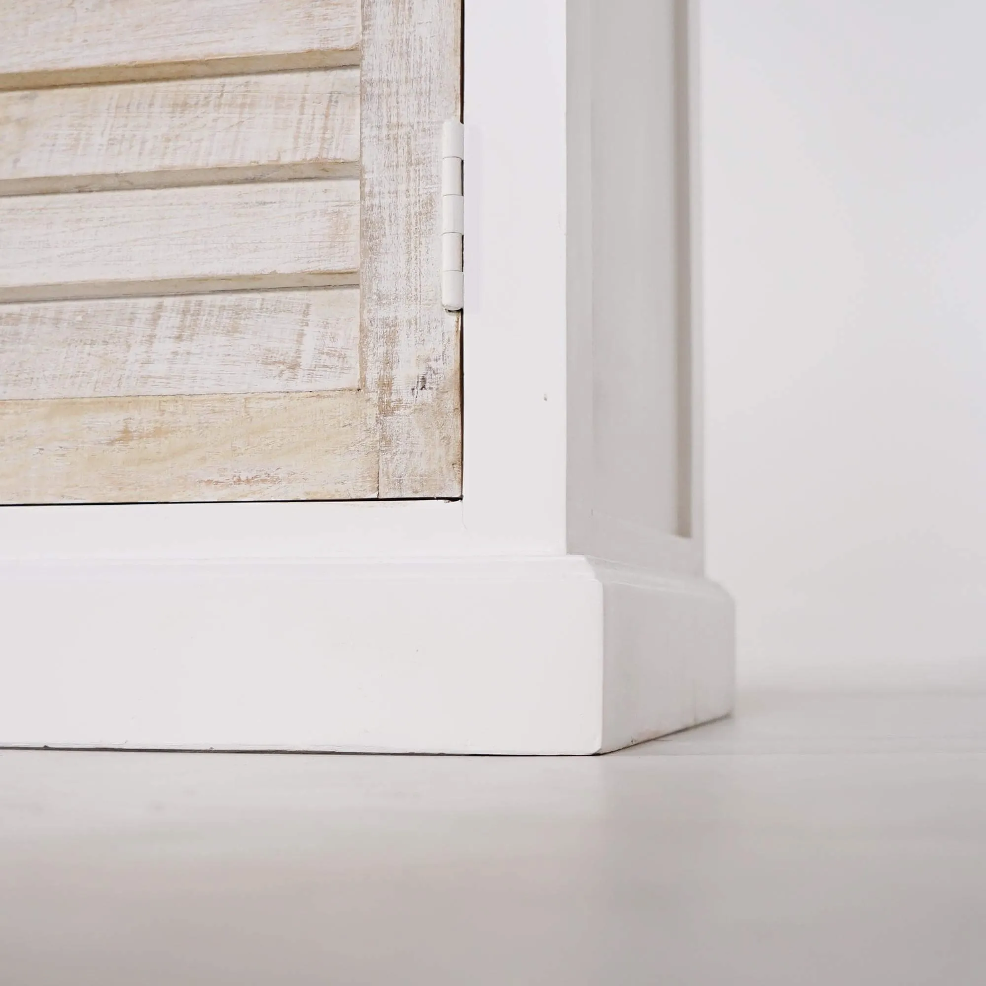 Pensé comme une pièce maîtresse pour sublimer un intérieur lumineux, ce buffet vaisselier en bois blanchi 180 cm de la collection Sea Side traduit notre volonté d’associer authenticité des matériaux et douceur des lignes. Nous avons imaginé ce meuble comme une évocation du mobilier de bord de mer, où la clarté du bois blanchi dialogue avec la chaleur naturelle du bois massif de manguier. Ce contraste subtil crée une présence apaisante qui trouve naturellement sa place dans un univers côtier, classique ou shabby chic.