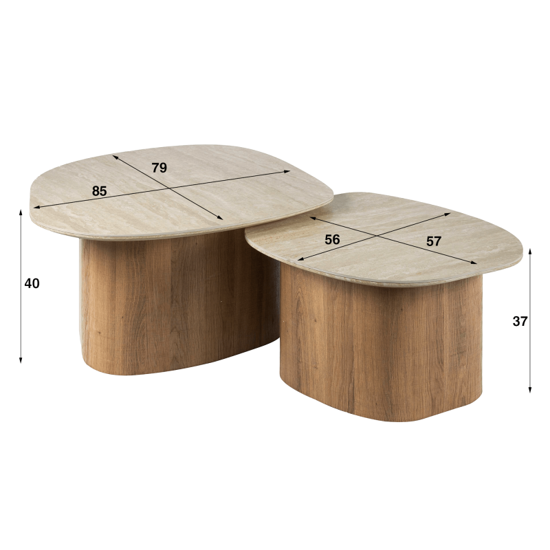 Table basse contemporaine en céramique travertin (lot de 2) - Tavola Table basse contemporaine en céramique travertin (lot de 2) - Tavola 85/57 x 79/56 x 40/37 cm