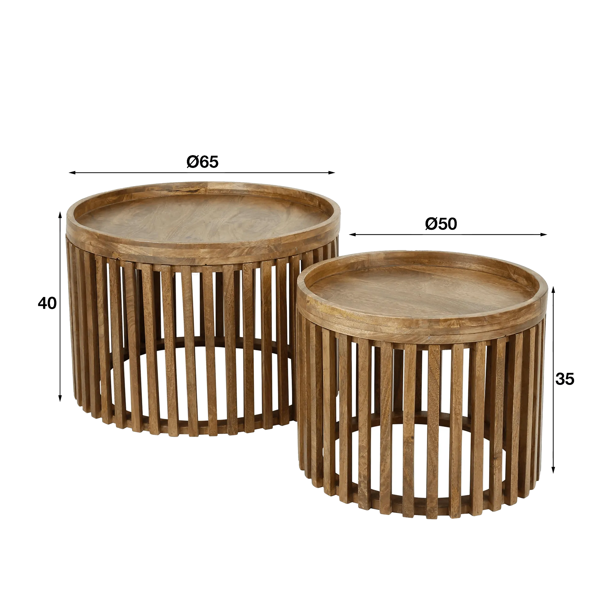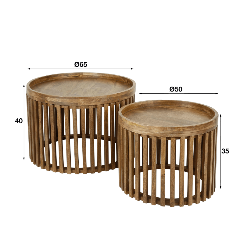 Table basse ronde en bois de manguier naturel (lot de 2) - Orbit