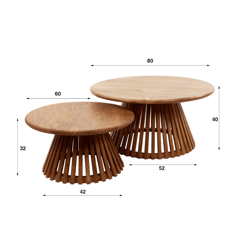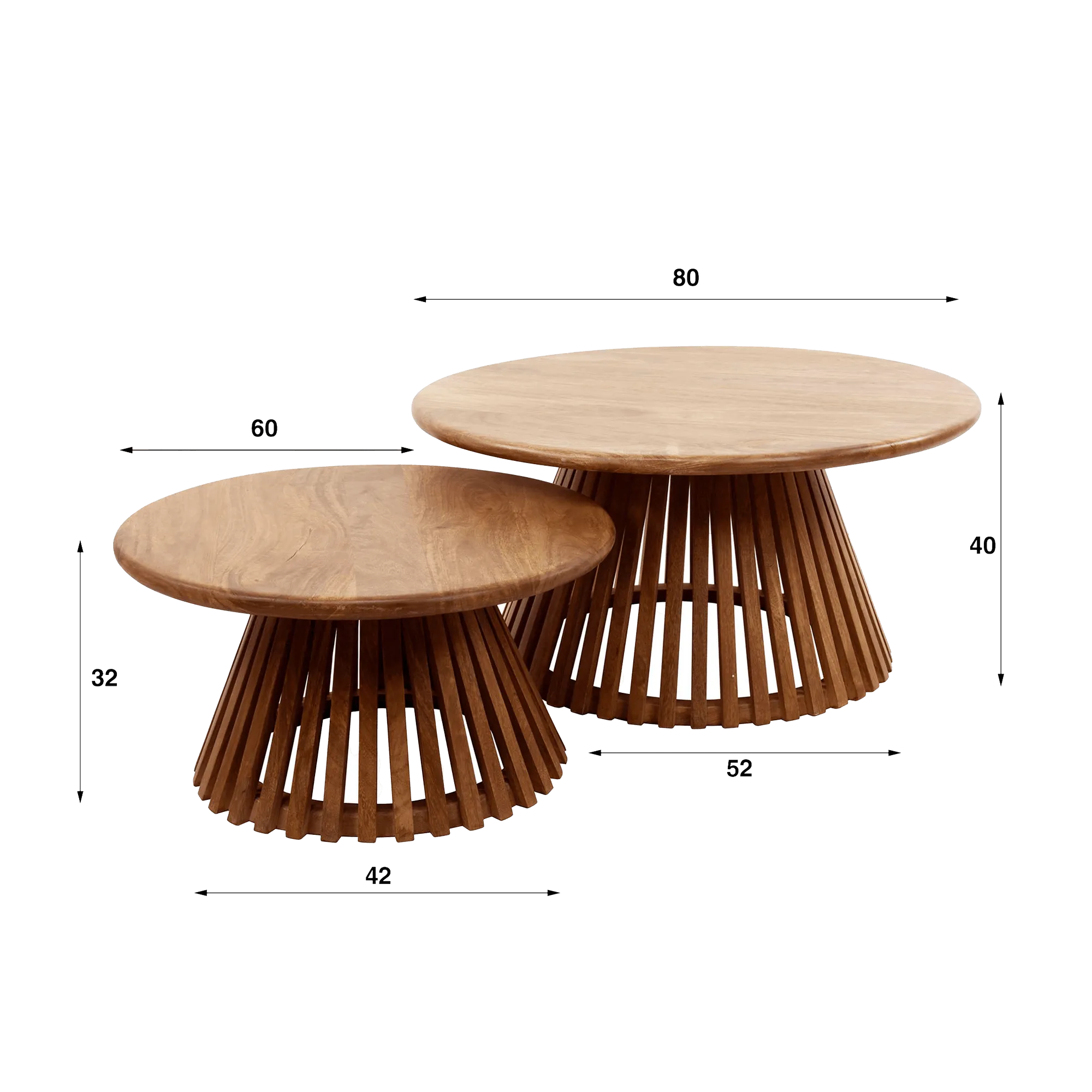 Table basse conique en bois de manguier naturel (lot de 2) - Orbit