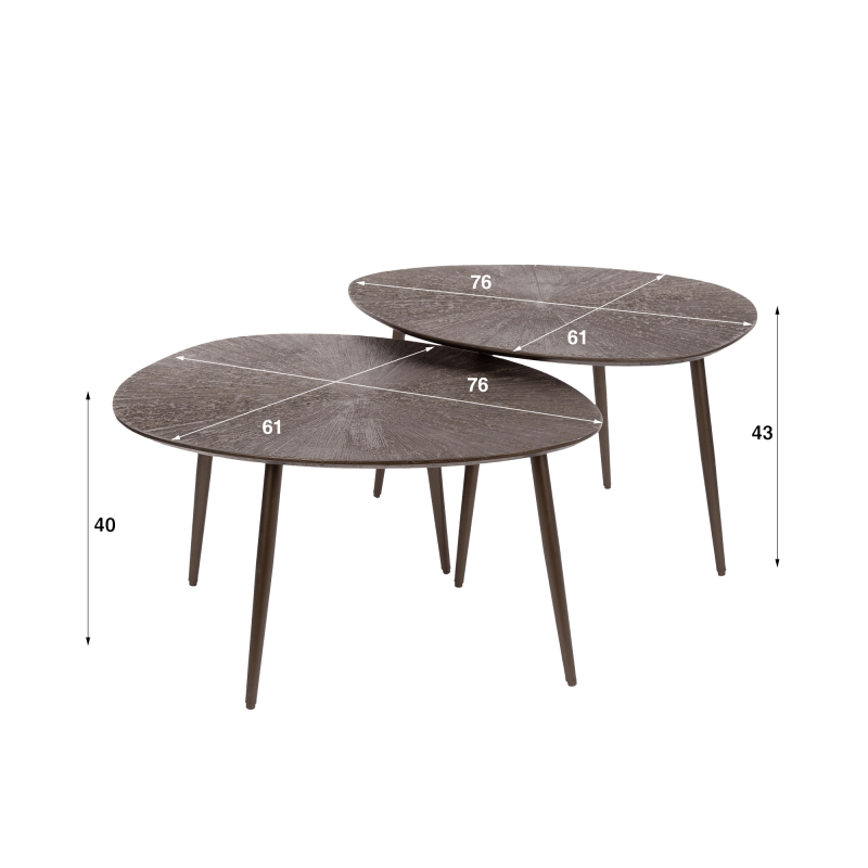 Table basse en métal couleur bronze (lot de 2) - Nesso 76 x 61 x 43/40 cm
