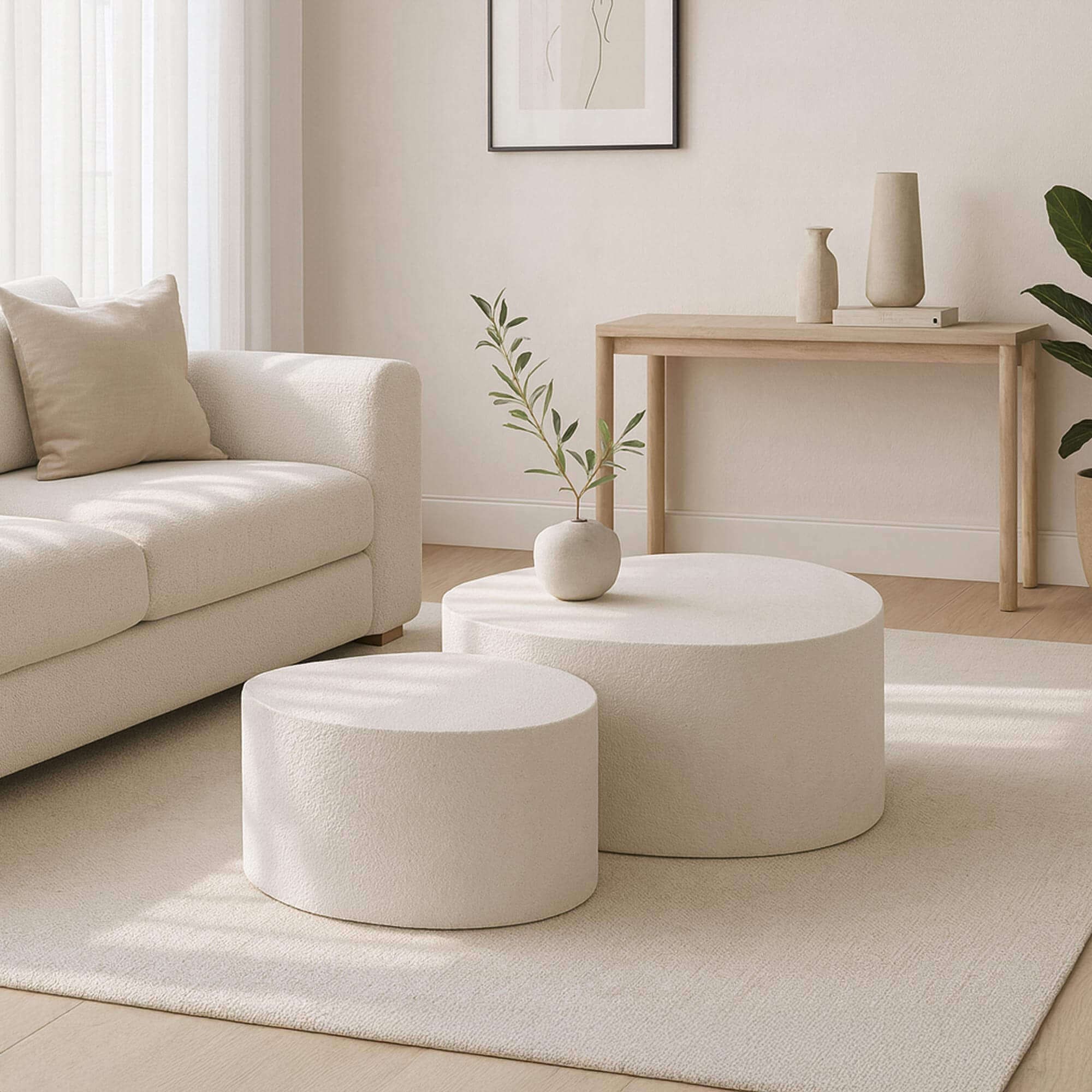 Déjà montée, cette table basse design blanche en marbre composite s’intègre instantanément dans le quotidien. Nous avons imaginé ce set pour accompagner aussi bien un intérieur épuré et lumineux qu’un salon plus contemporain, où elles apporteront un point d’équilibre entre modernité et douceur. Placées ensemble au centre de la pièce ou séparées pour accompagner un fauteuil, elles restent faciles à déplacer et à adapter au rythme de vie de chacun.