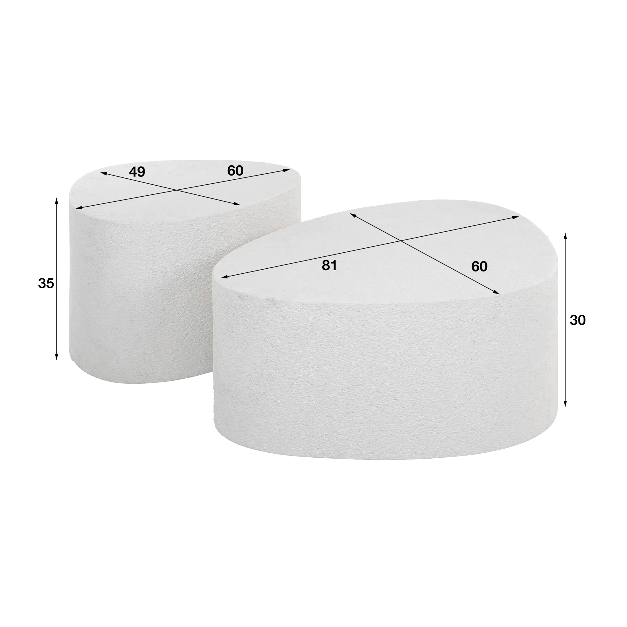 Table basse design blanche en marbre composite (lot de 2) - Arco 81/60 x 60/49 x 30/35 cm