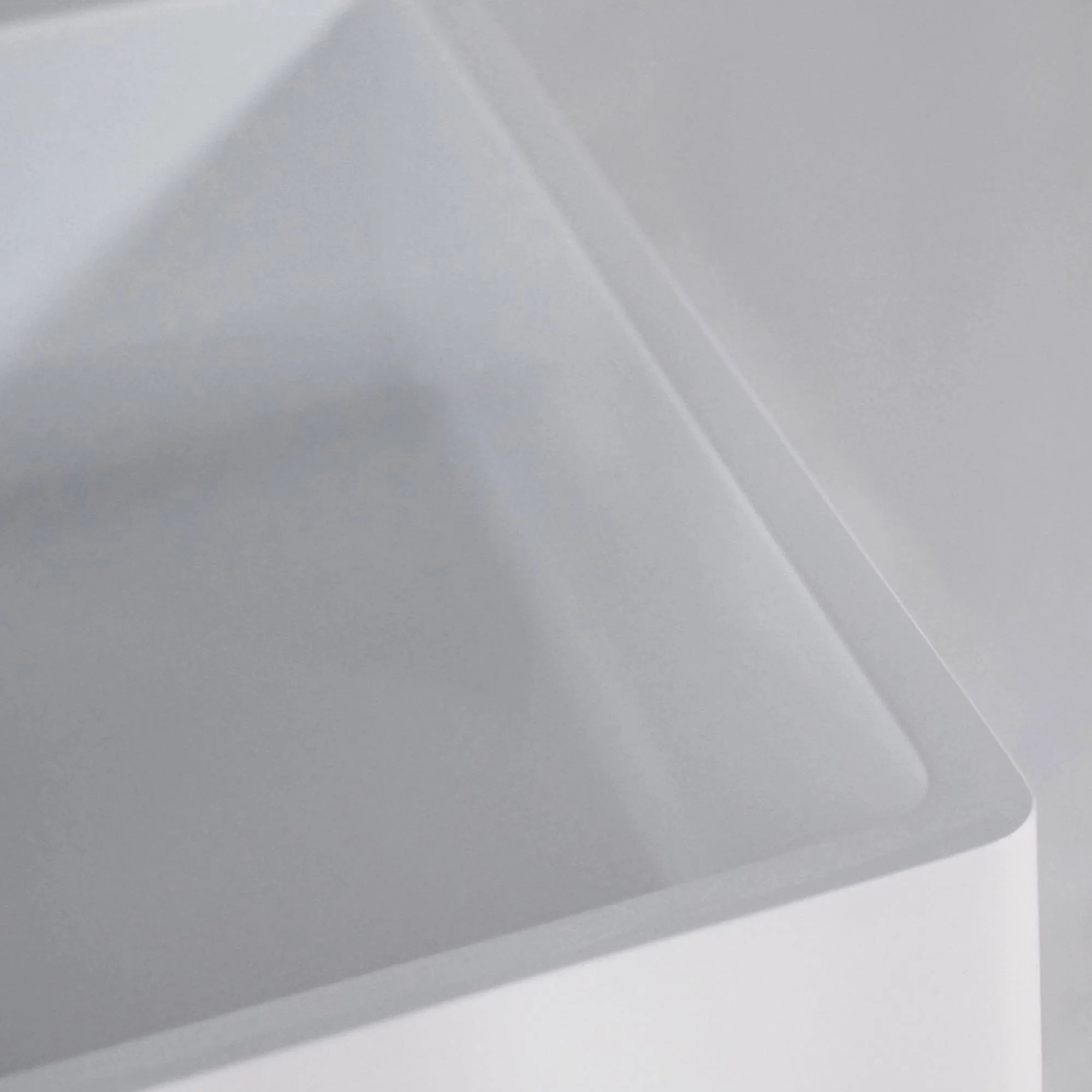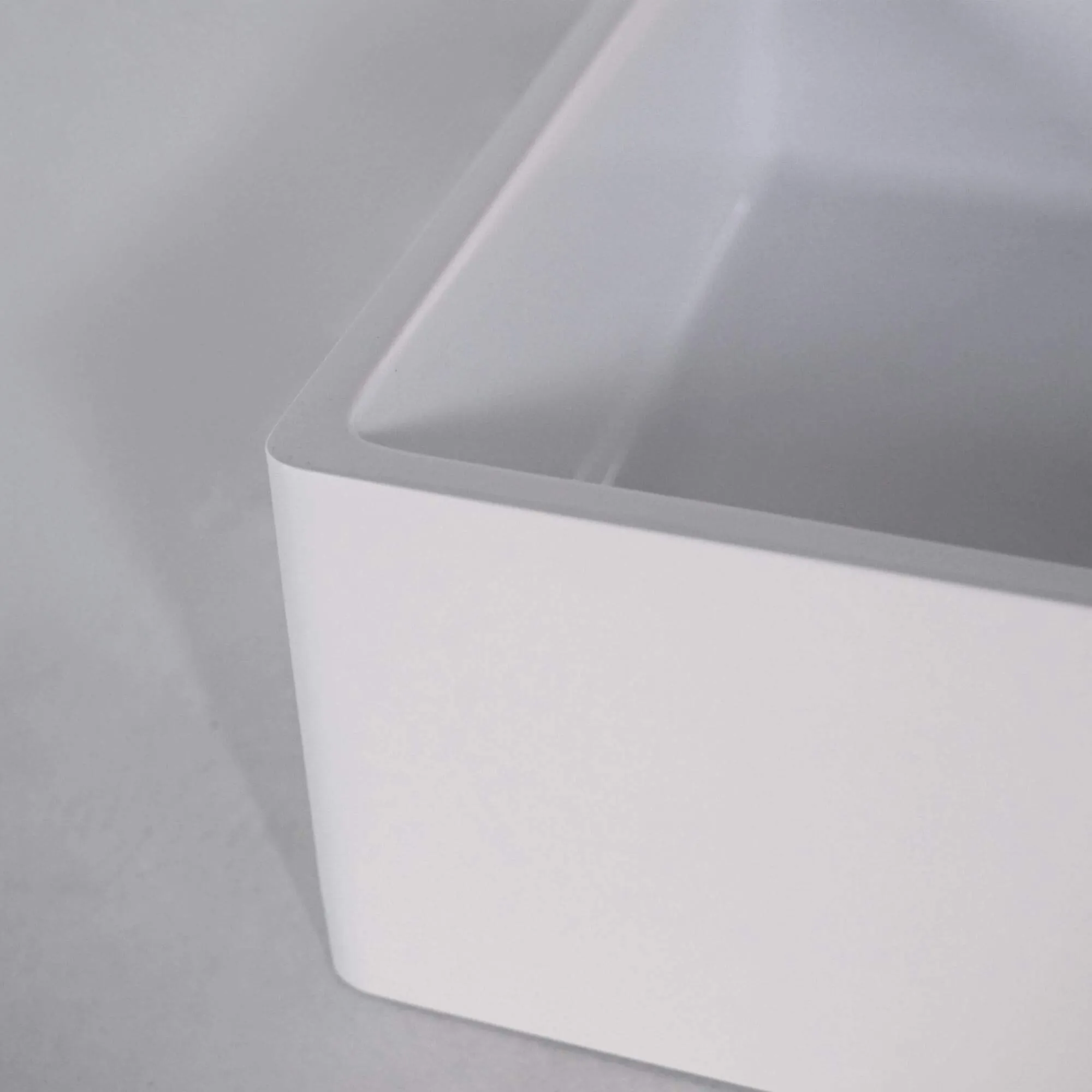 La céramique que nous avons sélectionnée se distingue par sa finition blanc mat, douce au regard et agréable au toucher. Elle capte la lumière sans la refléter de manière excessive, créant une atmosphère apaisante et équilibrée dans la salle de bain. Nous avons porté une attention particulière aux arêtes, légèrement adoucies, ainsi qu’à la profondeur du bassin, étudiée pour favoriser un écoulement naturel de l’eau tout en limitant les projections. Le perçage central, au diamètre standard de 4,5 cm, assure une compatibilité simple avec la majorité des bondes du marché.