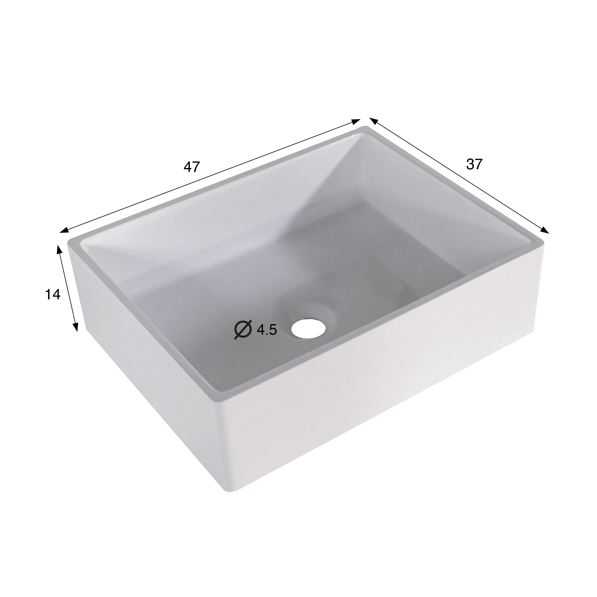 La silhouette rectangulaire de cette vasque en céramique à poser, blanc mat, aux lignes nettes et équilibrées, repose sur une géométrie maîtrisée qui inspire immédiatement confiance. Avec ses proportions harmonieuses — environ 47 cm de largeur pour 37 cm de profondeur et une hauteur de 14 cm — la vasque en céramique à poser Nova trouve facilement sa place sur un meuble sous-vasque, qu’il soit compact ou plus généreux. Ces dimensions offrent un bassin confortable à l’usage, pensé pour accompagner les gestes du matin comme ceux du soir avec fluidité.