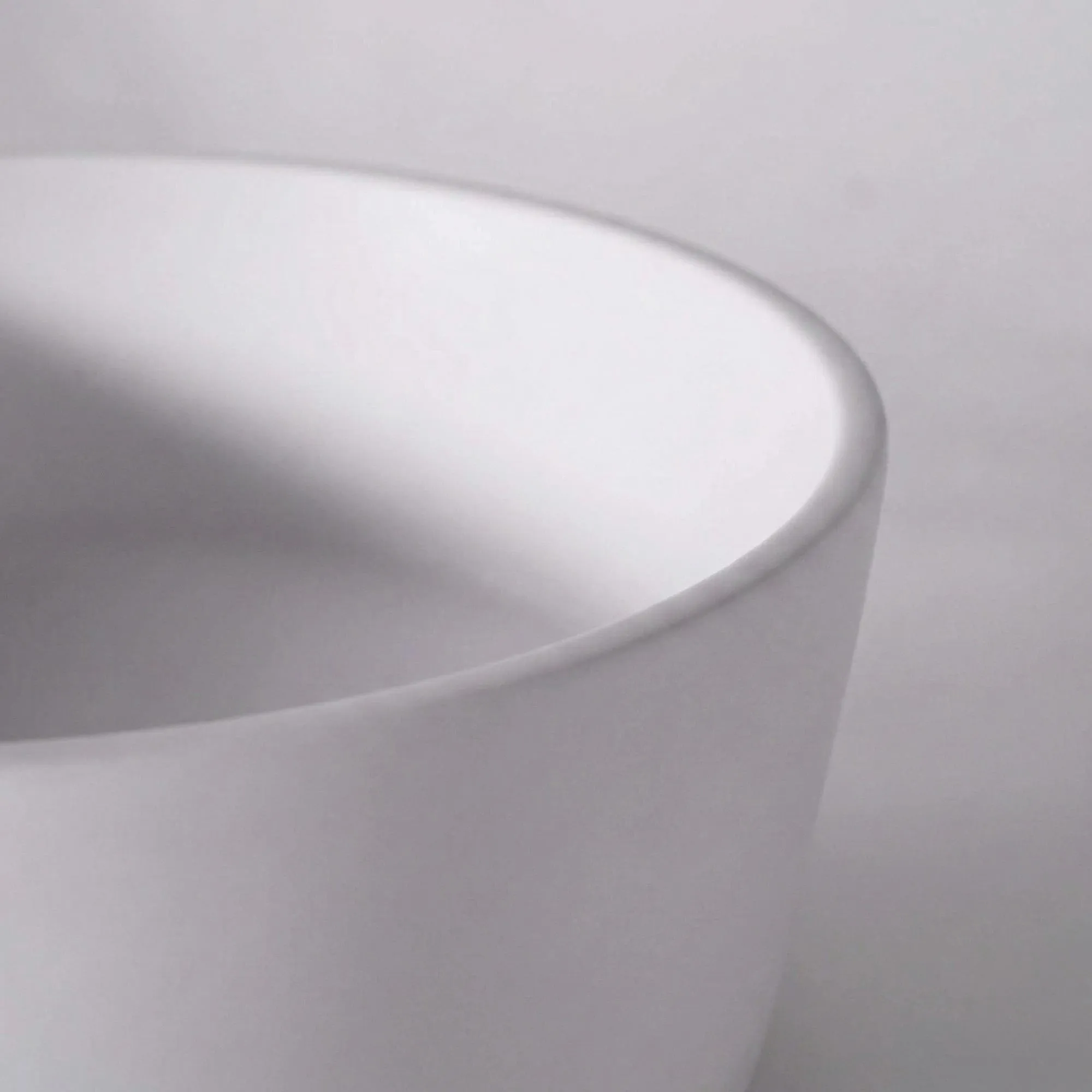 Réalisée en céramique blanc mat, la vasque ronde Rundo séduit par la douceur de son toucher et par la qualité de sa finition. La surface diffuse la lumière avec subtilité, sans reflets excessifs, apportant une sensation visuelle apaisante au quotidien. Ce choix de matière n’est pas anodin : la céramique offre une excellente résistance à l’humidité, aux variations de température et à l’usage répété, tout en conservant une facilité d’entretien appréciable dans une pièce de vie aussi sollicitée.