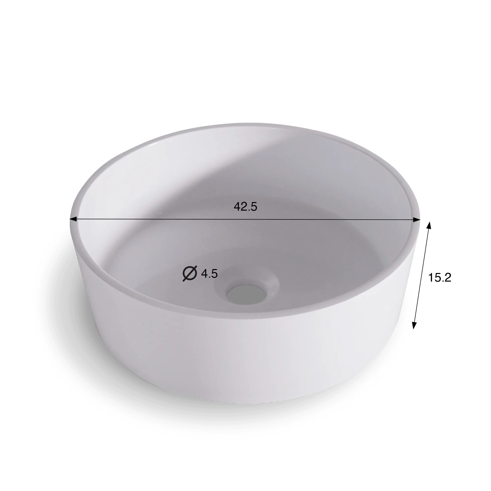 Vasque à poser de salle de bain ronde, blanc mat, résine composite - Rundo 42,5 x 42,5 x 15,2 cm