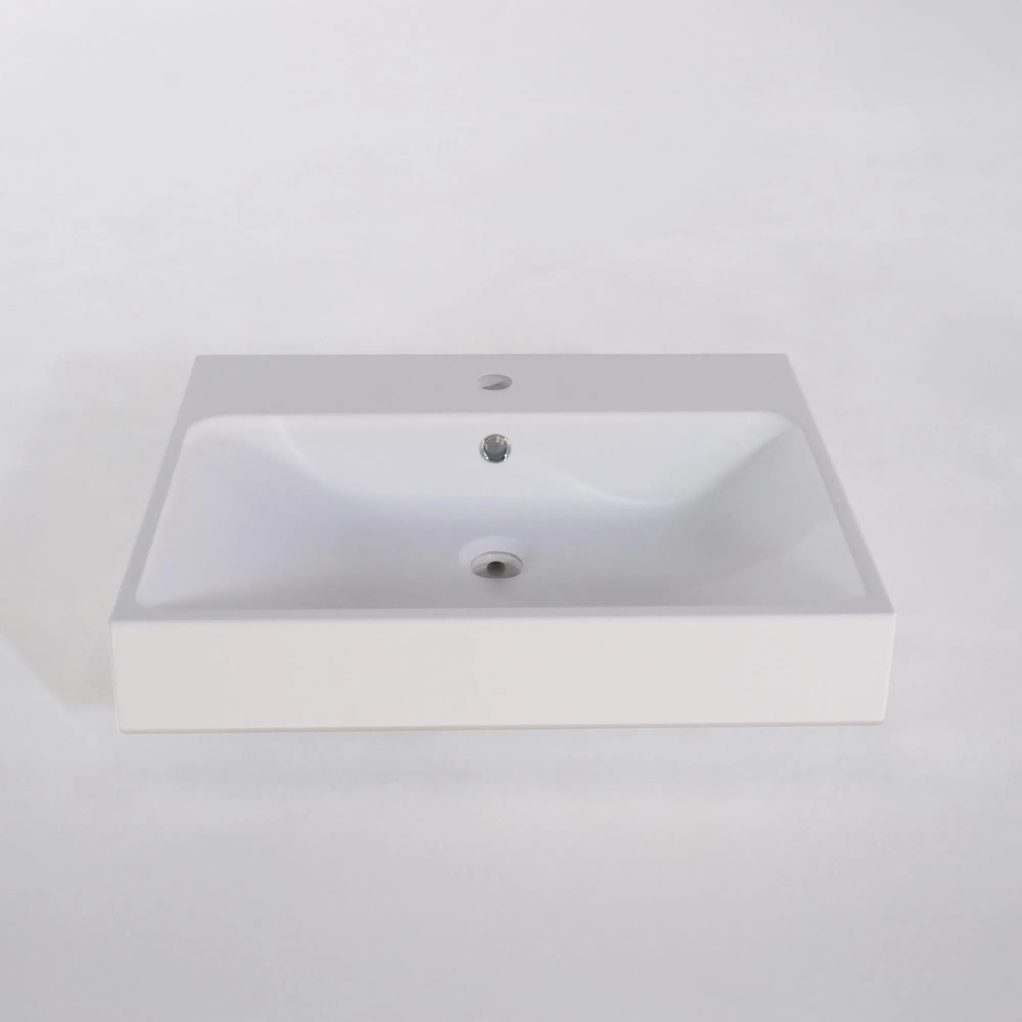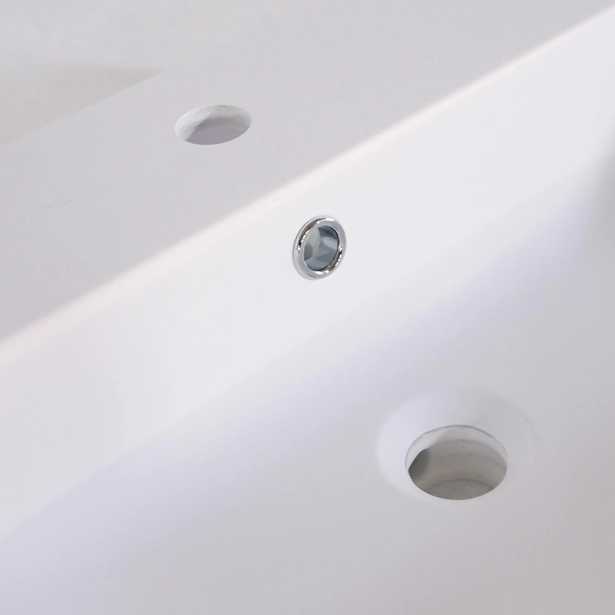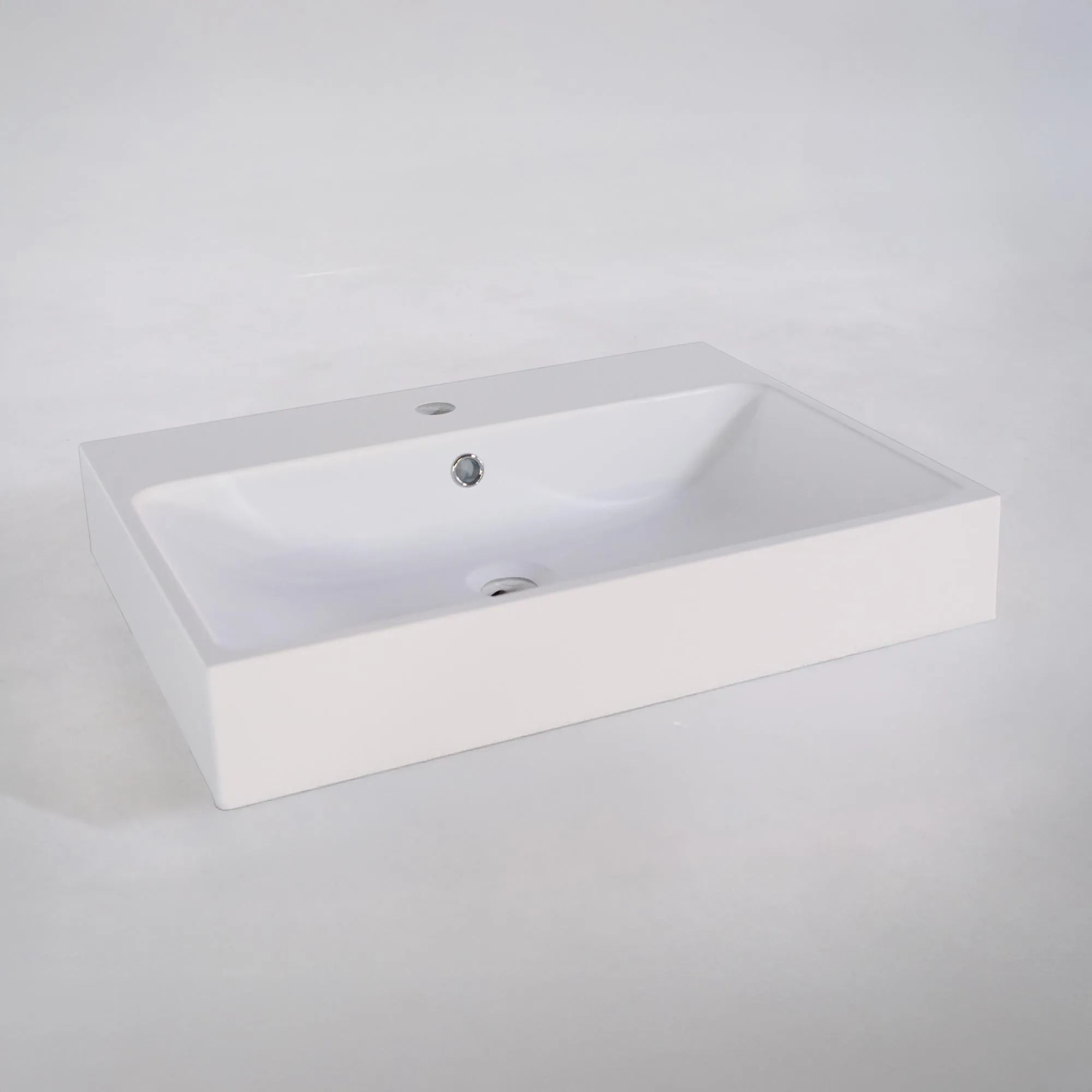 Len format rectangulaire généreux de cette vasque salle de bain en céramique, blanc mat, pensé pour un usage confortable, offre un bassin bien proportionné qui facilite les gestes du matin comme ceux du soir. Les dimensions intérieures permettent une utilisation fluide, tandis que la hauteur contenue de la vasque assure une intégration naturelle sur un meuble sous-vasque, sans alourdir la composition. L’emplacement du perçage pour la robinetterie et l’évacuation a été étudié pour garantir une ergonomie optimale et une installation simple, quelle que soit la configuration choisie.