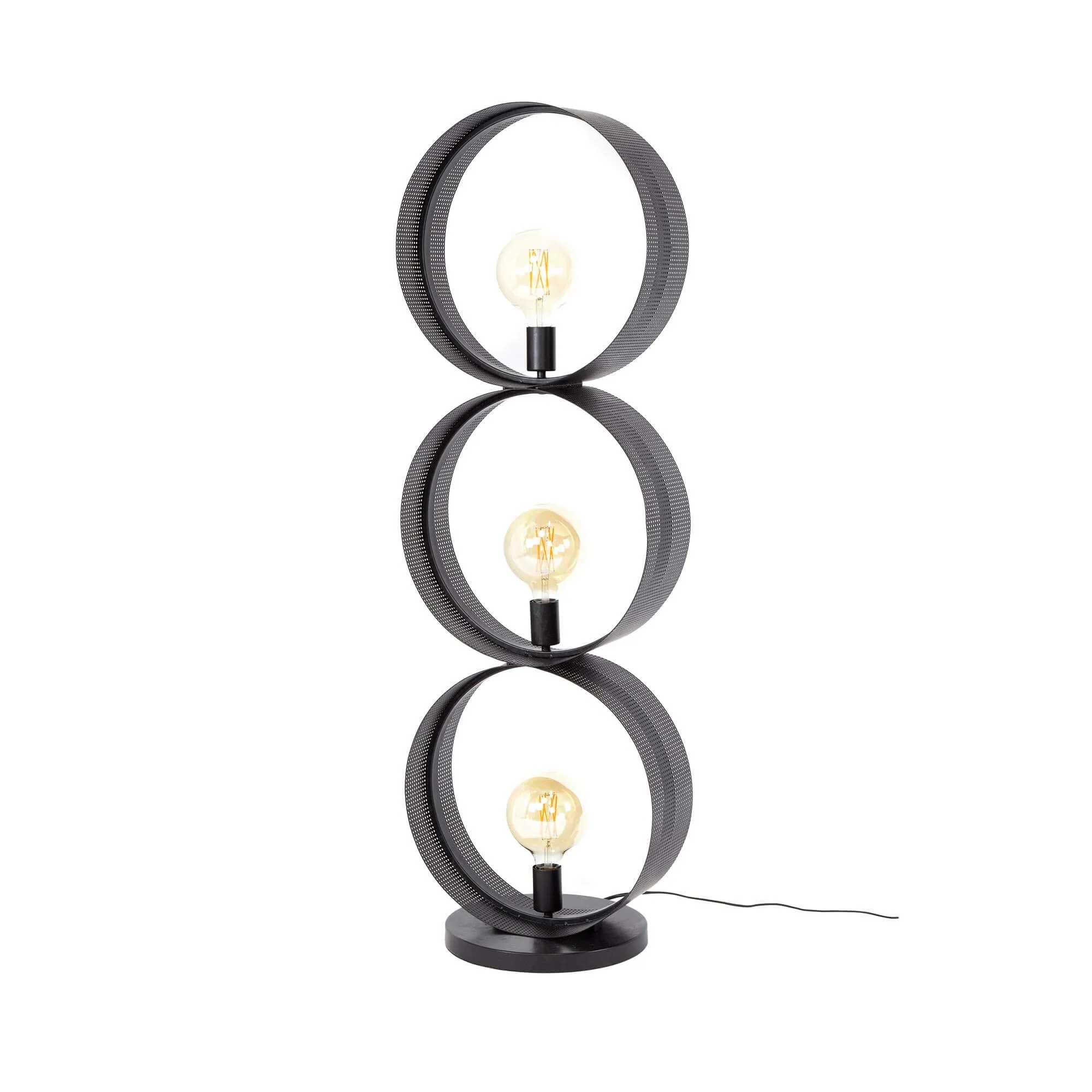 Avec la lampe de salon en métal avec finition anthracite Torre, nos designers ont souhaité réinterpréter l’univers industriel à travers une pièce lumineuse à la fois audacieuse et raffinée. Sa silhouette verticale, composée de trois anneaux métalliques superposés, évoque autant la mécanique de précision que l’élan d’une colonne sculptée. Chaque cercle accueille une source lumineuse et crée un jeu d’ombres aérien qui se déploie subtilement dans la pièce.